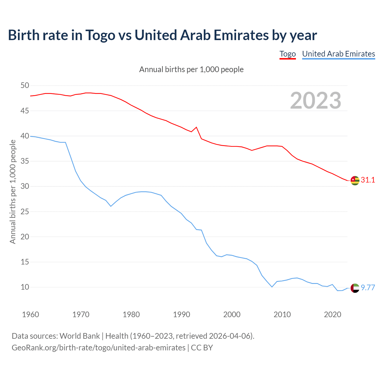 GeoRank.org/birth-rate/togo/united-arab-emirates | CC BY