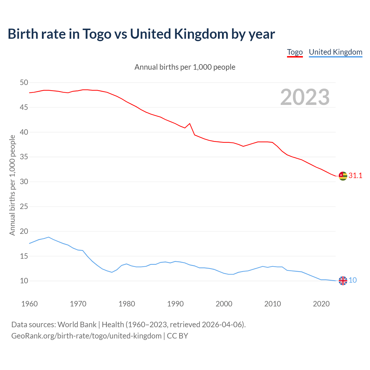 GeoRank.org/birth-rate/togo/united-kingdom | CC BY