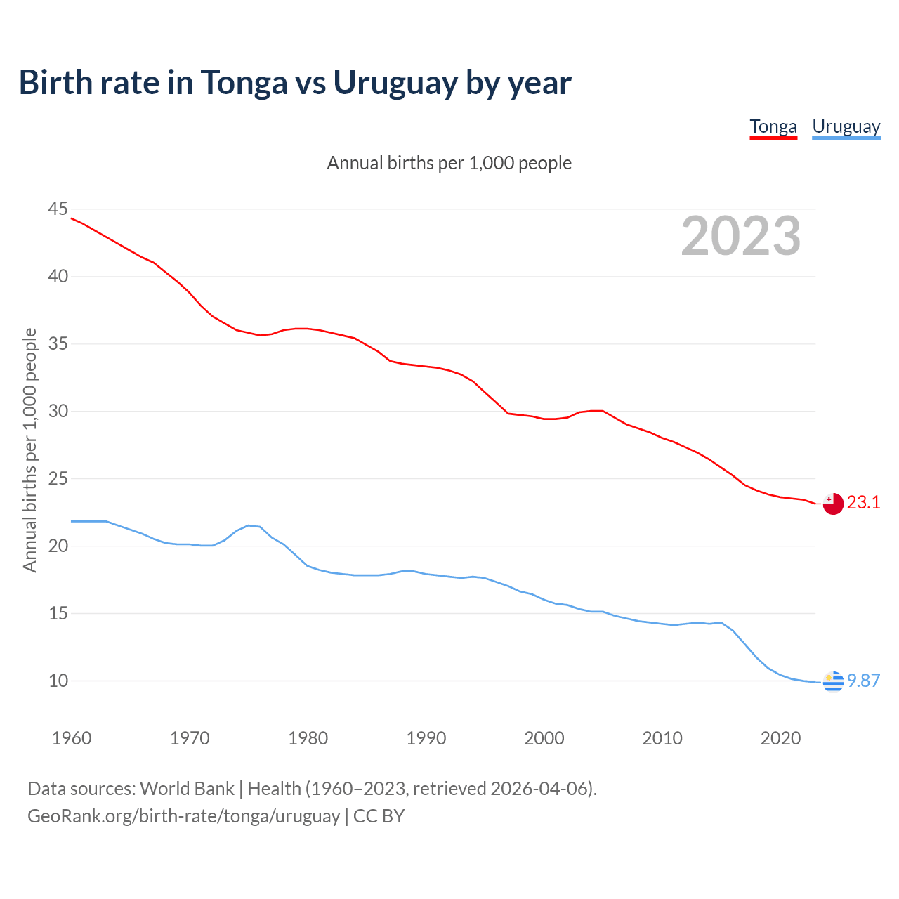 GeoRank.org/birth-rate/tonga/uruguay | CC BY