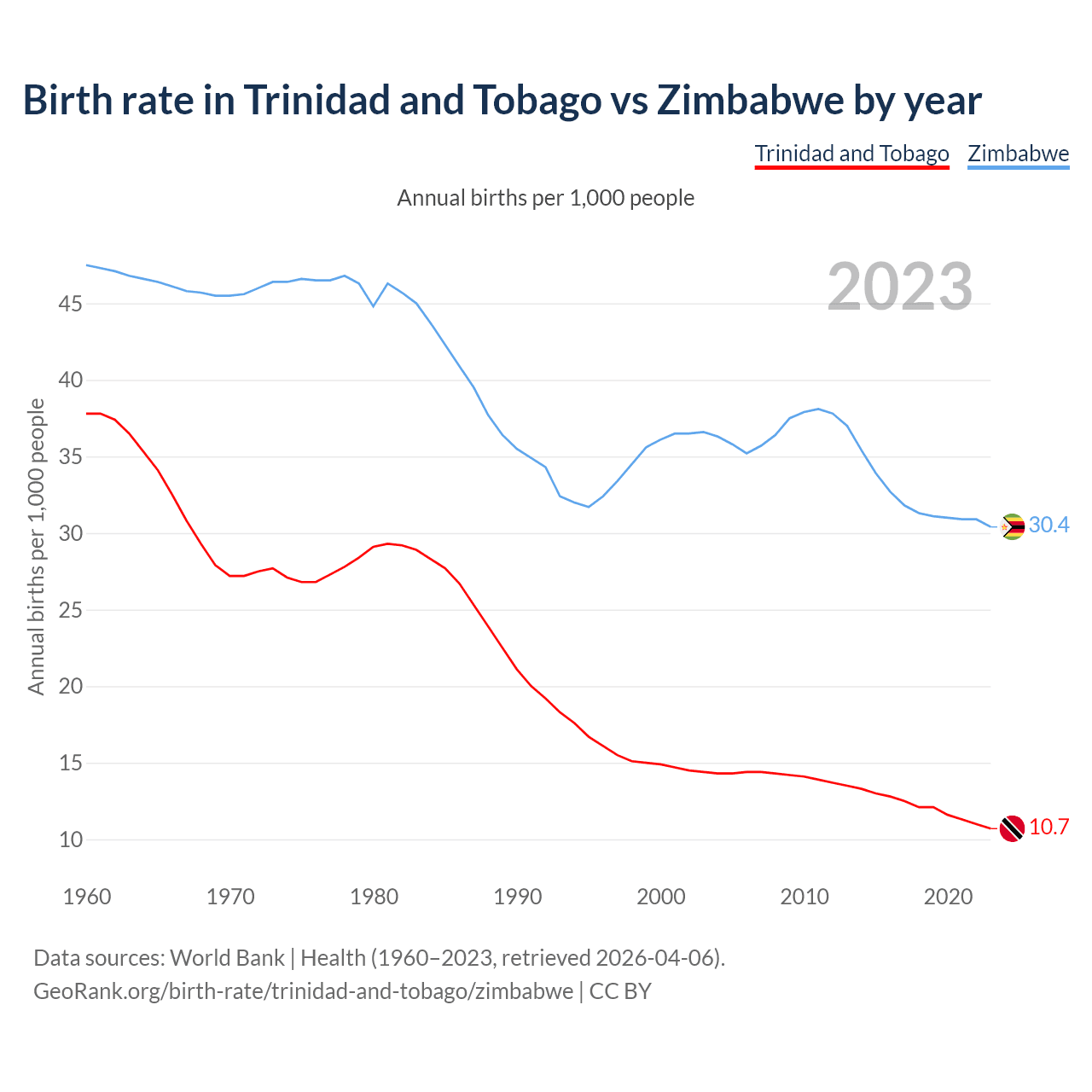 GeoRank.org/birth-rate/trinidad-and-tobago/zimbabwe | CC BY