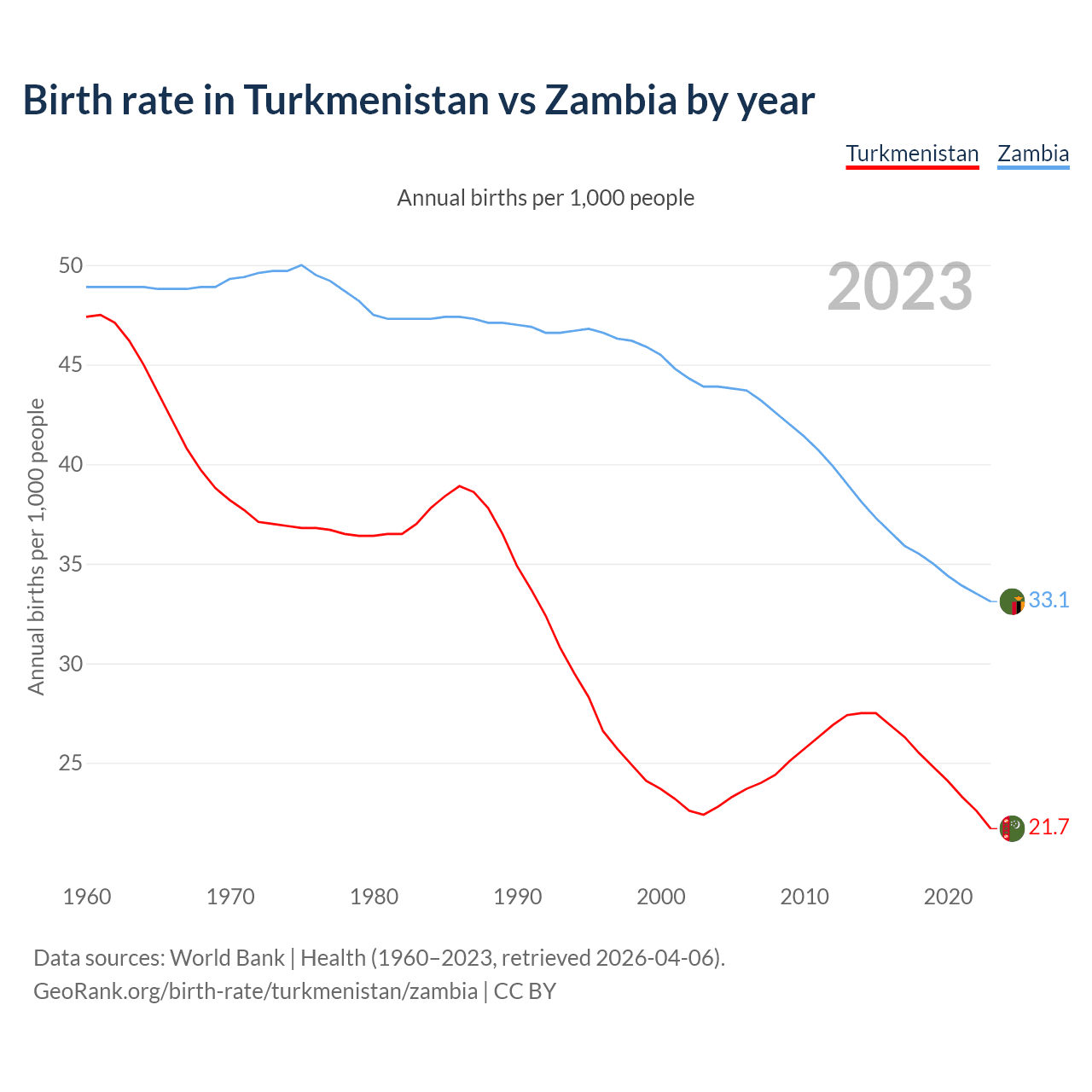 GeoRank.org/birth-rate/turkmenistan/zambia | CC BY