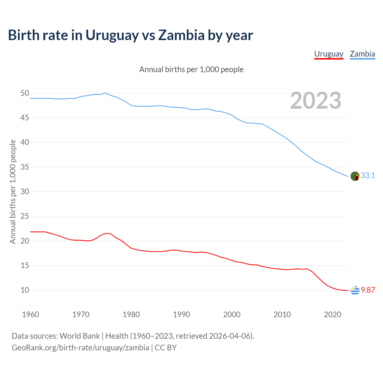 GeoRank.org/birth-rate/uruguay/zambia | CC BY