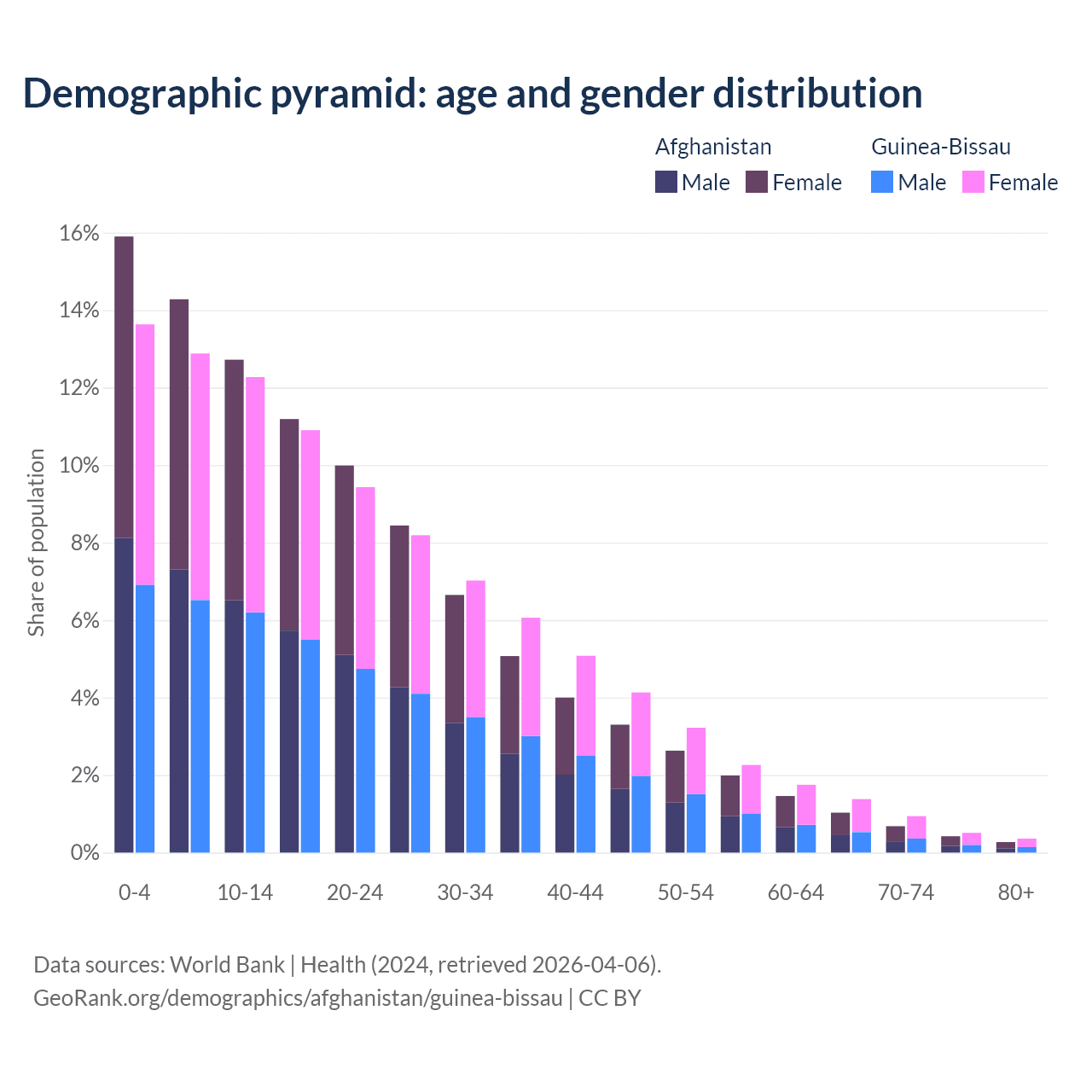 Demographics of Afghanistan compared to Guinea-Bissau: