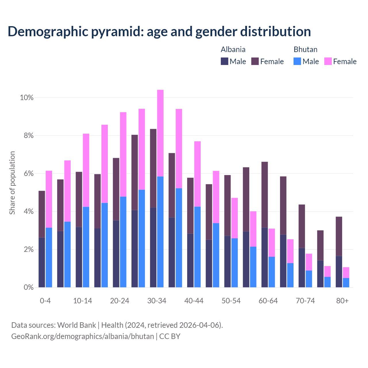 Demographics of Albania compared to Bhutan: