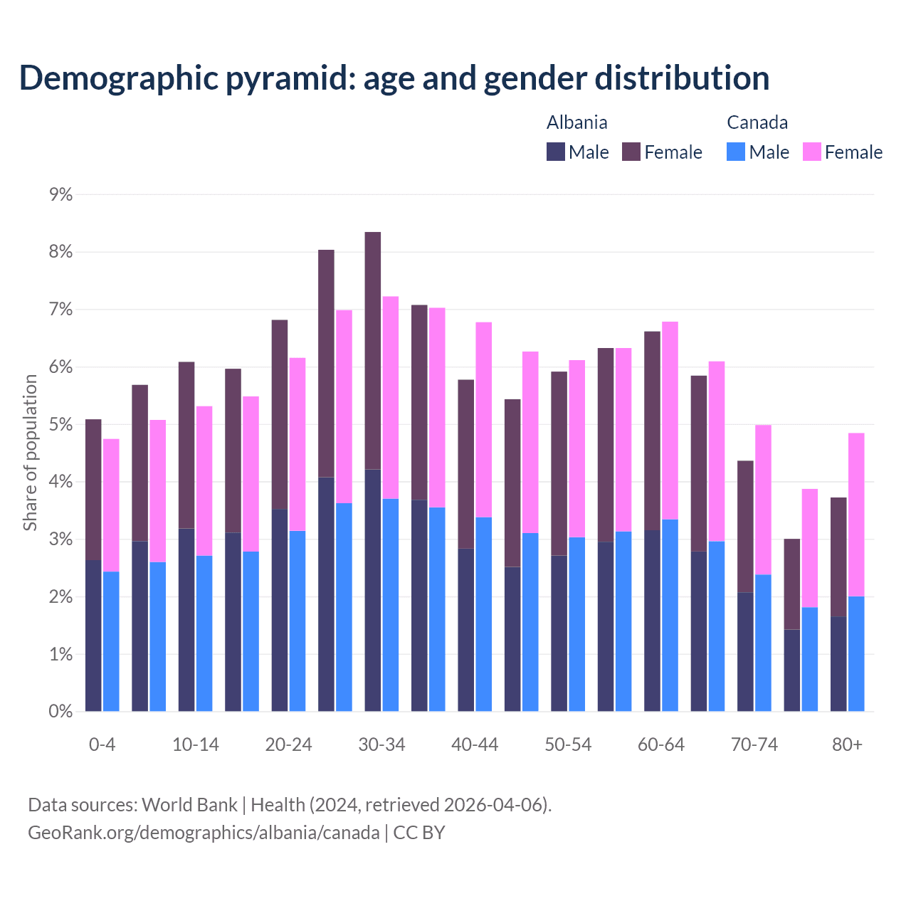 Demographics of Albania compared to Canada: