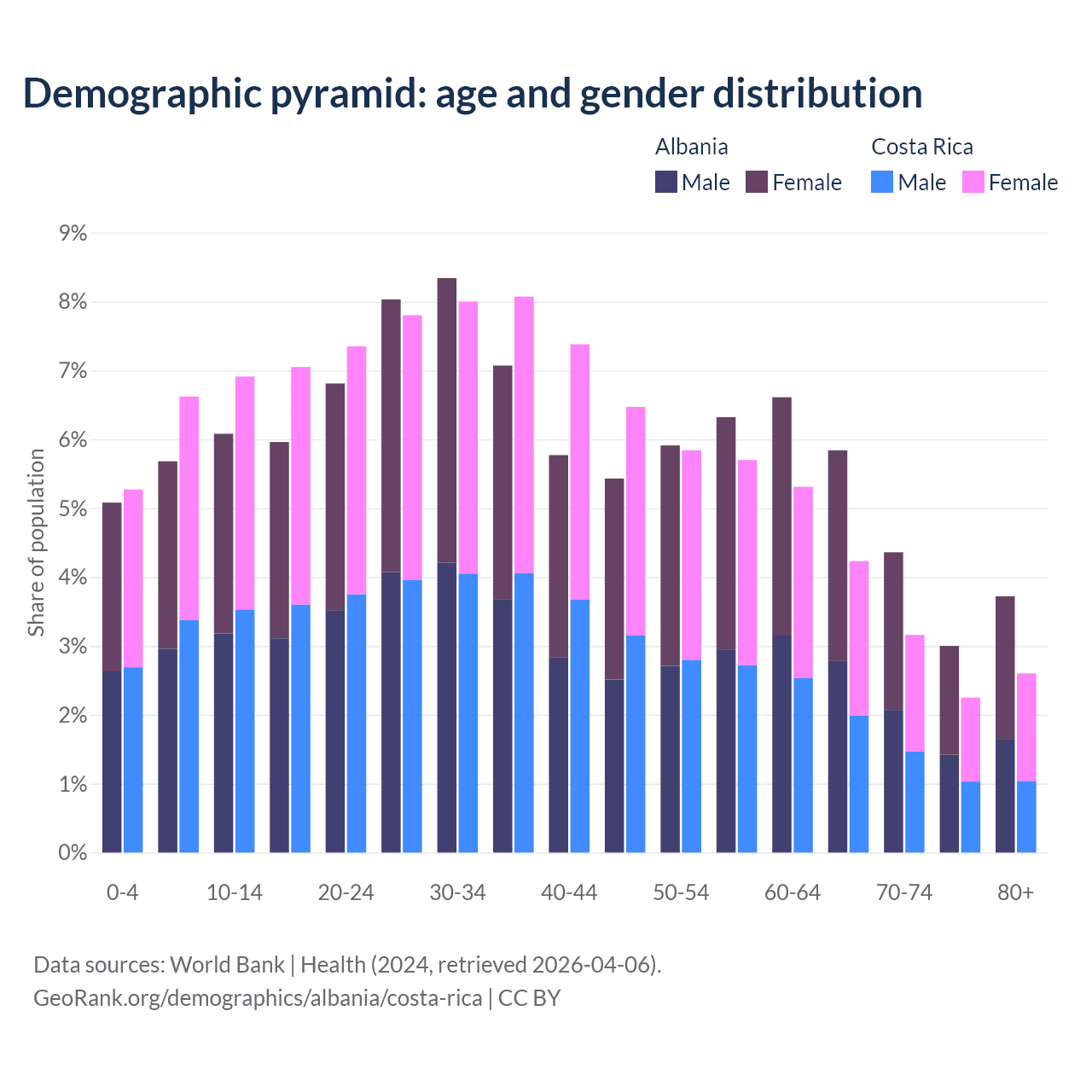 Demographics of Albania compared to Costa Rica: