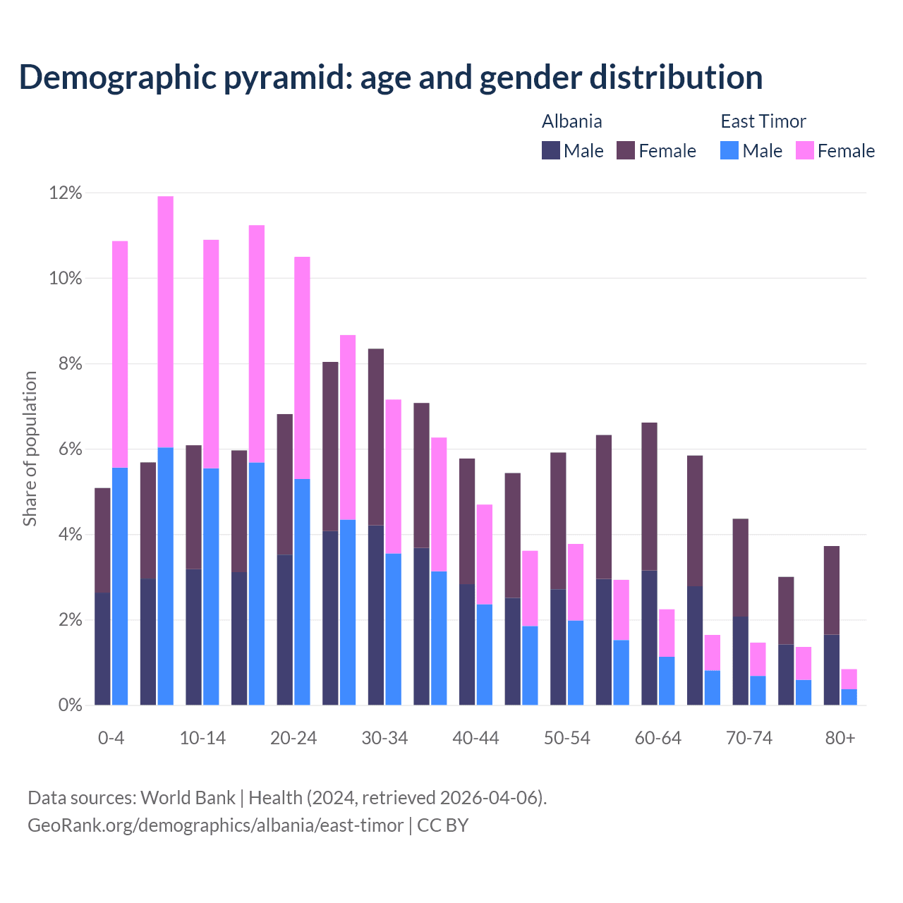 Demographics of Albania compared to East Timor: