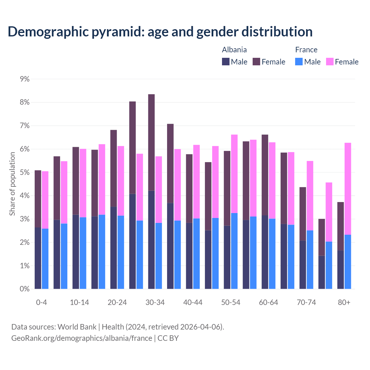 Demographics of Albania compared to France: