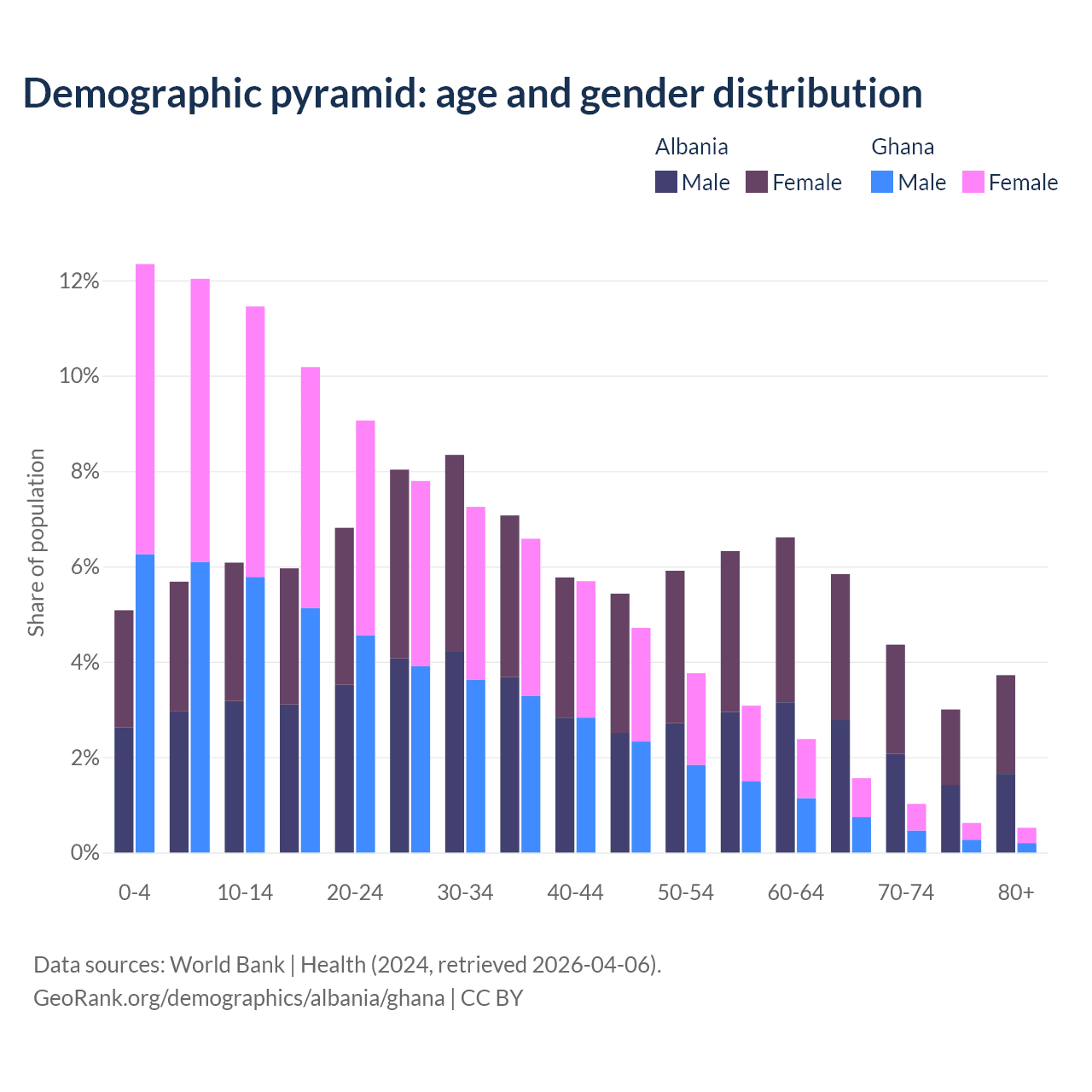 Demographics of Albania compared to Ghana: