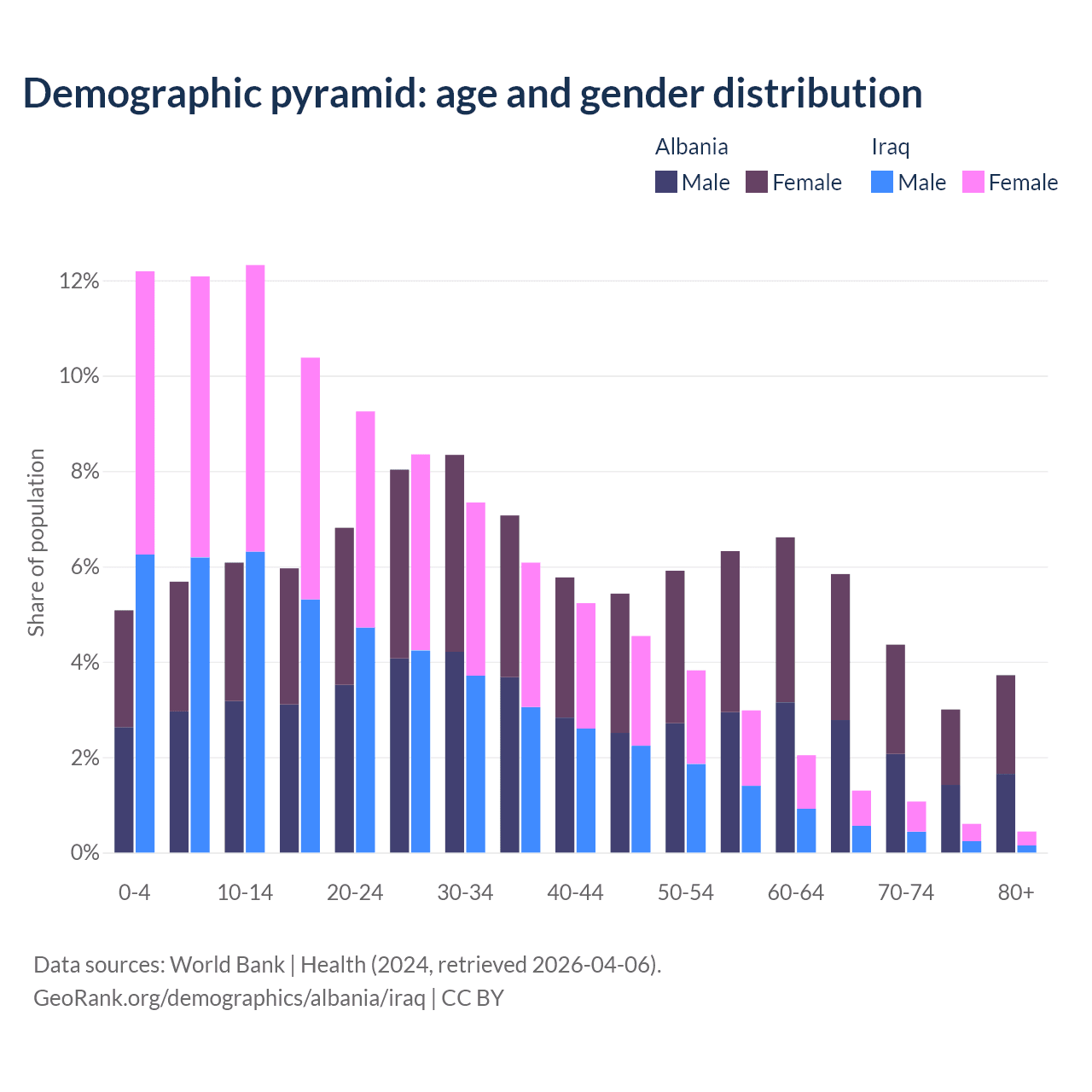 Demographics of Albania compared to Iraq: