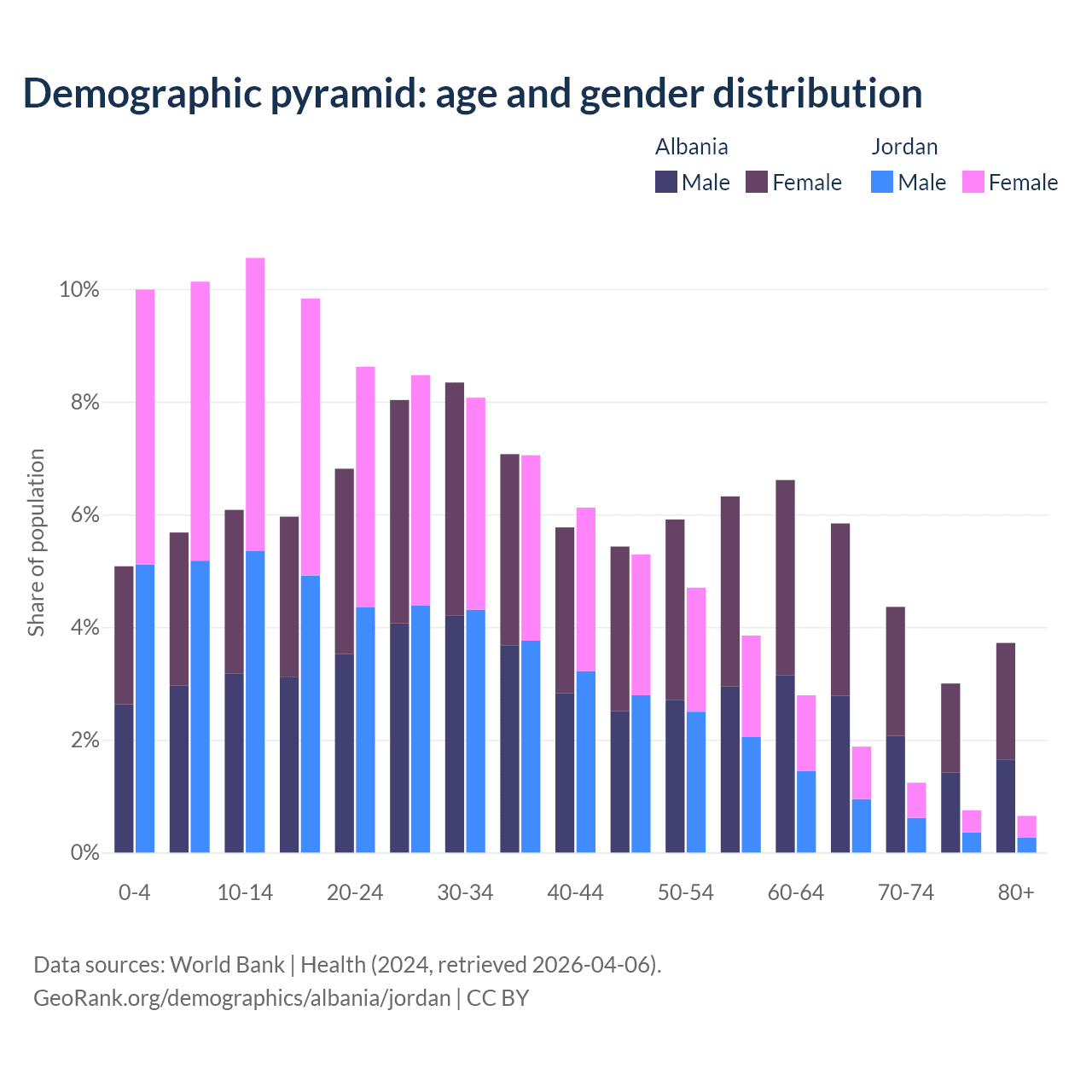 Demographics of Albania compared to Jordan: