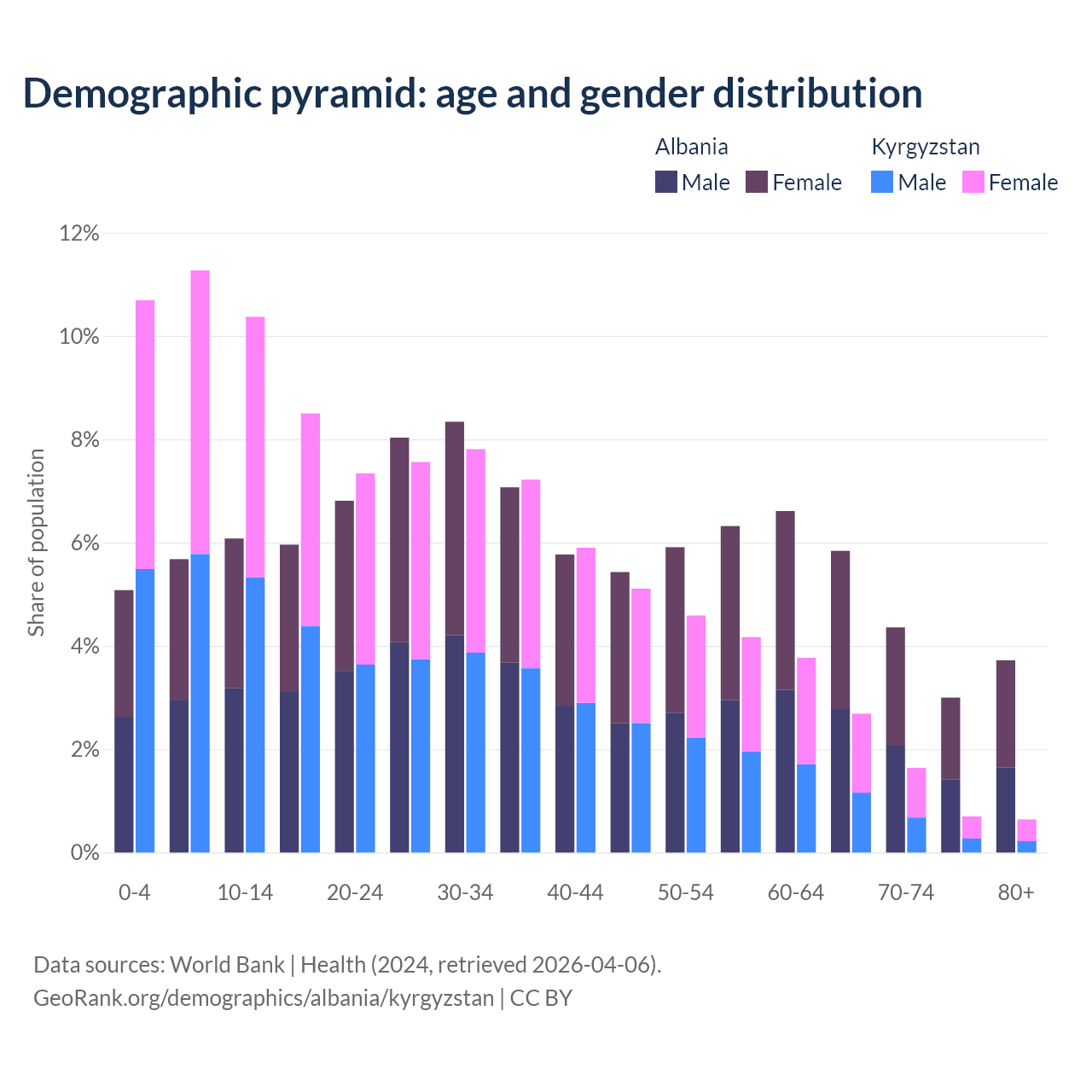 Demographics of Albania compared to Kyrgyzstan: