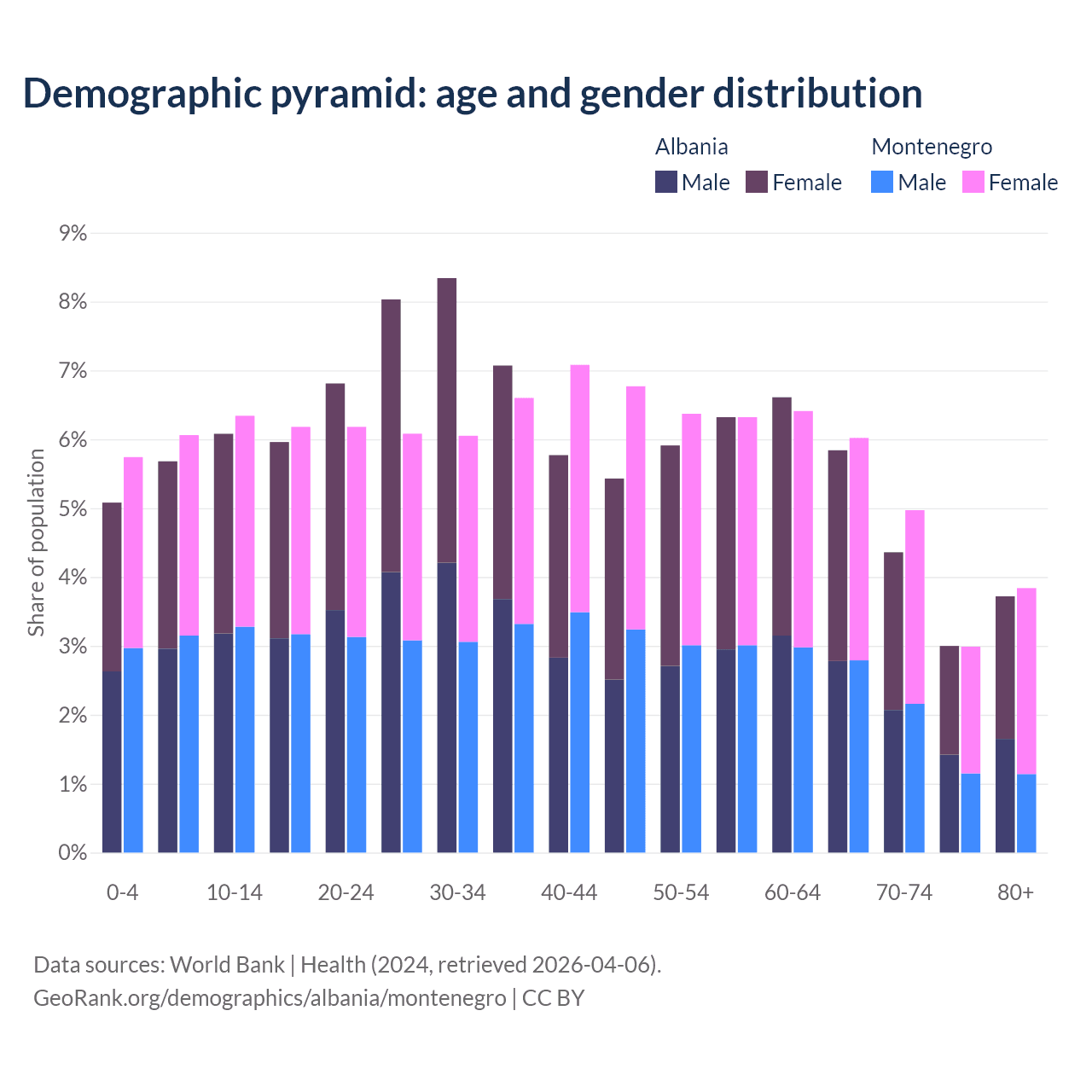 Demographics of Albania compared to Montenegro: