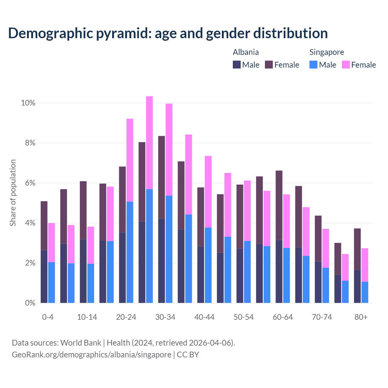 Demographics of Albania compared to Singapore:
