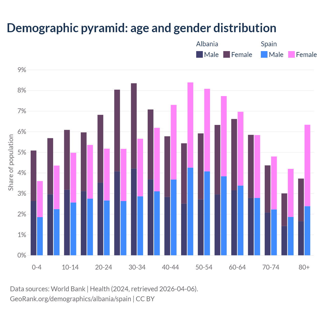 Demographics of Albania compared to Spain: