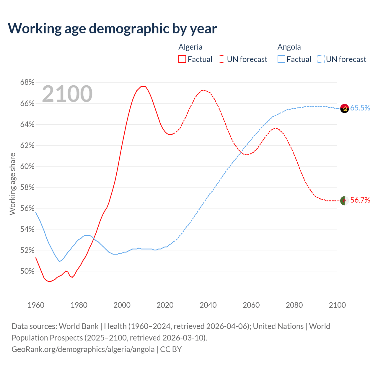 - Algeria has 30.4M working age adults (aged 15-64) vs 21.4M in Angola.