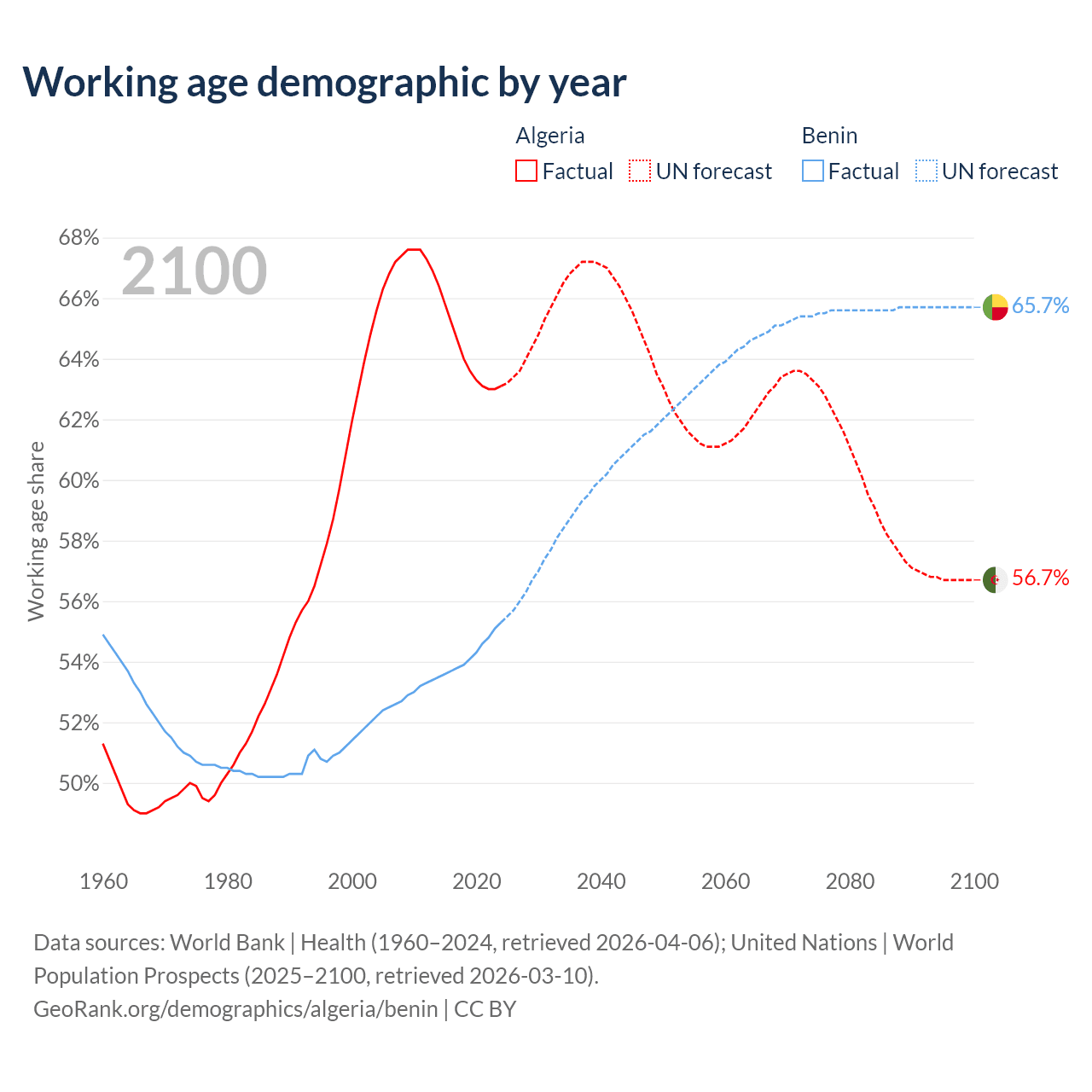 - Algeria has 30.4M working age adults (aged 15-64) vs 8.45M in Benin.