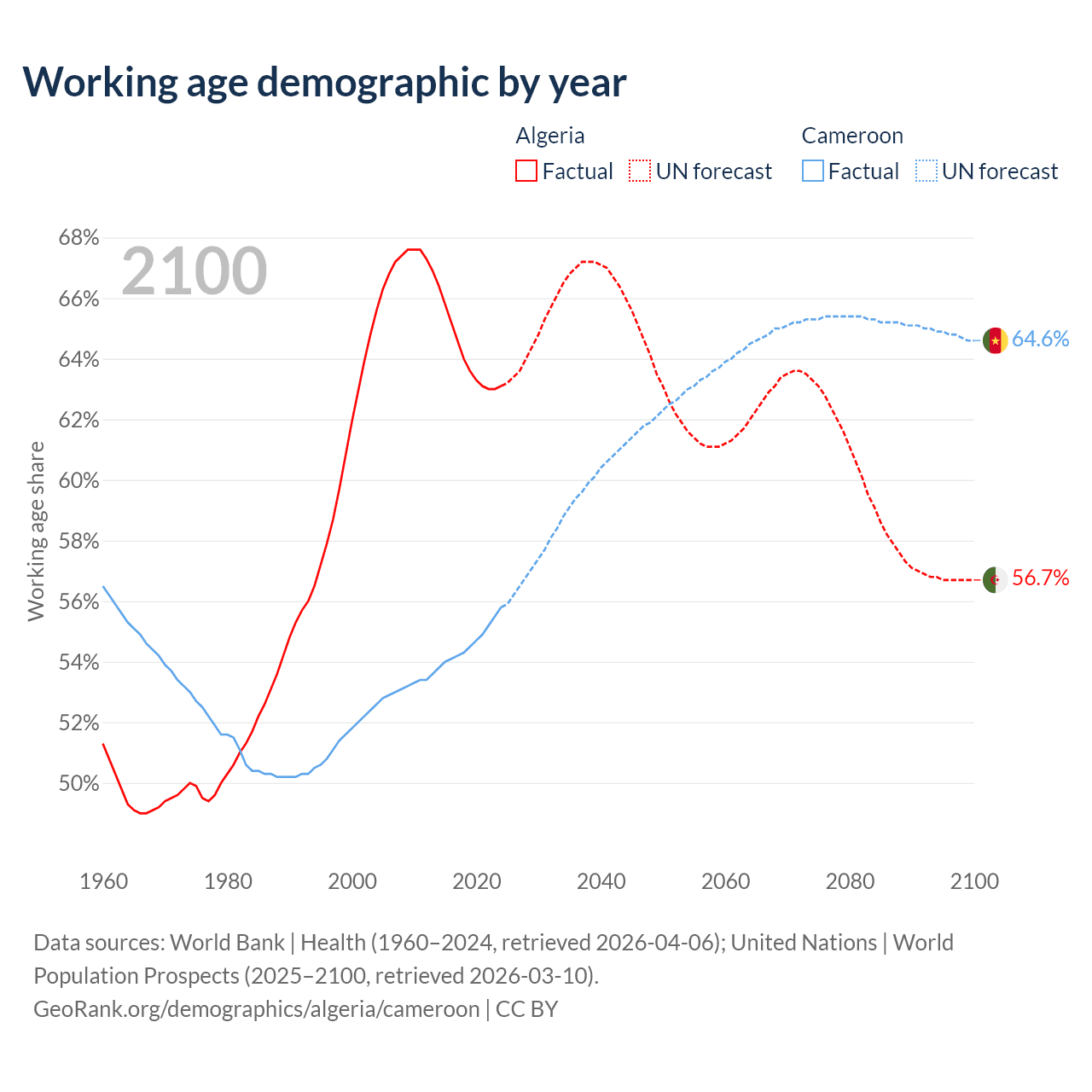 - Algeria has 30.4M working age adults (aged 15-64) vs 17.2M in Cameroon.