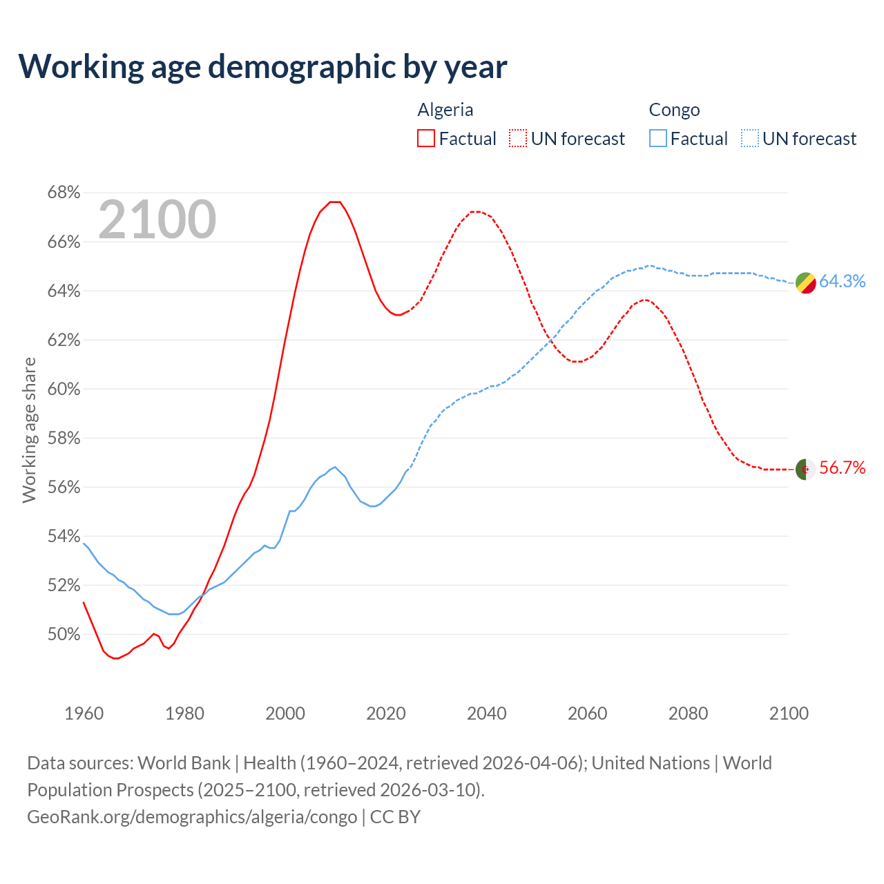 - Algeria has 30.4M working age adults (aged 15-64) vs 3.78M in the Congo.