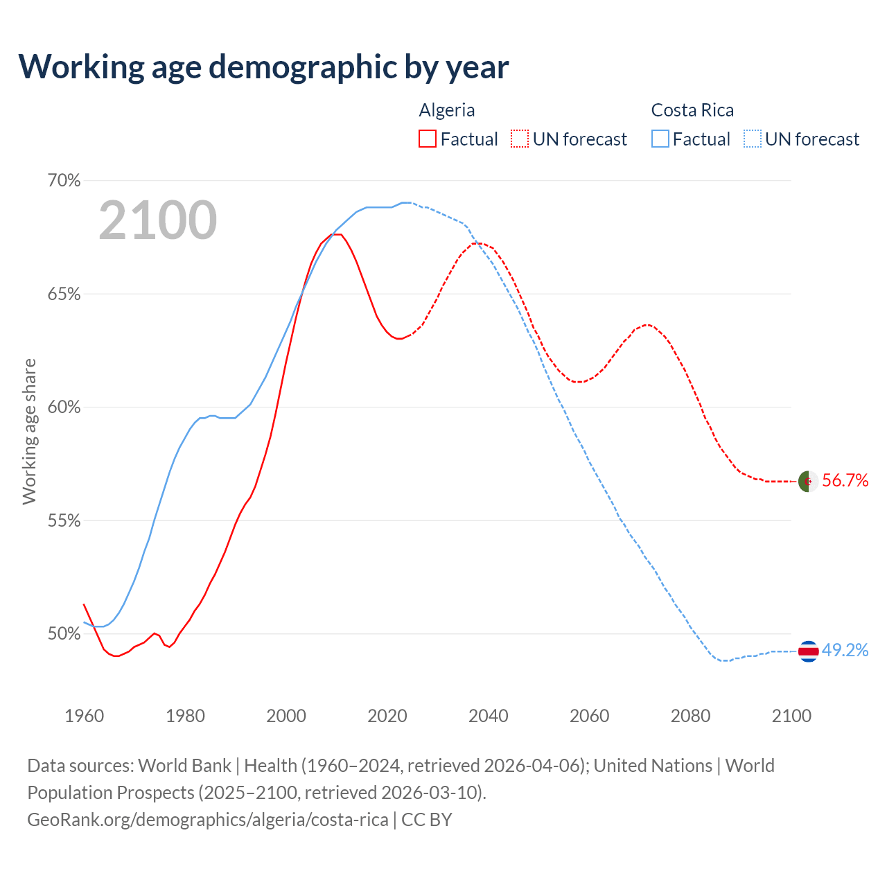 - Algeria has 30.4M working age adults (aged 15-64) vs 3.57M in Costa Rica.