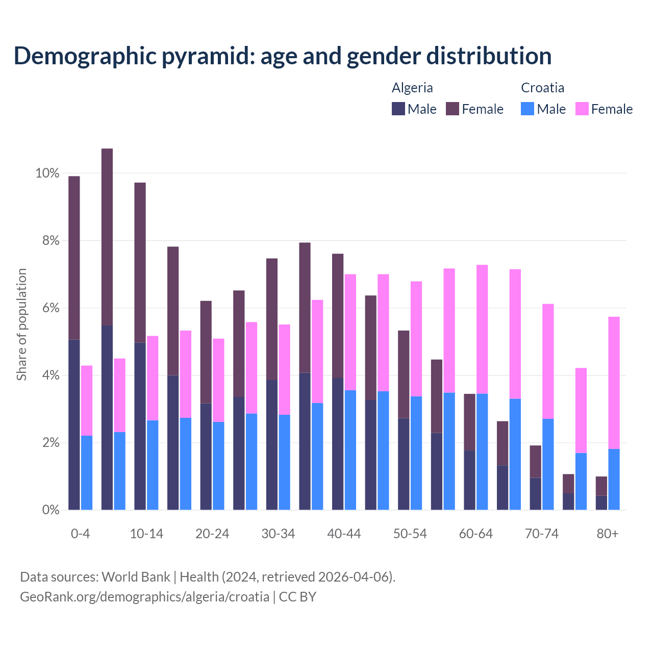 Demographics of Algeria compared to Croatia: