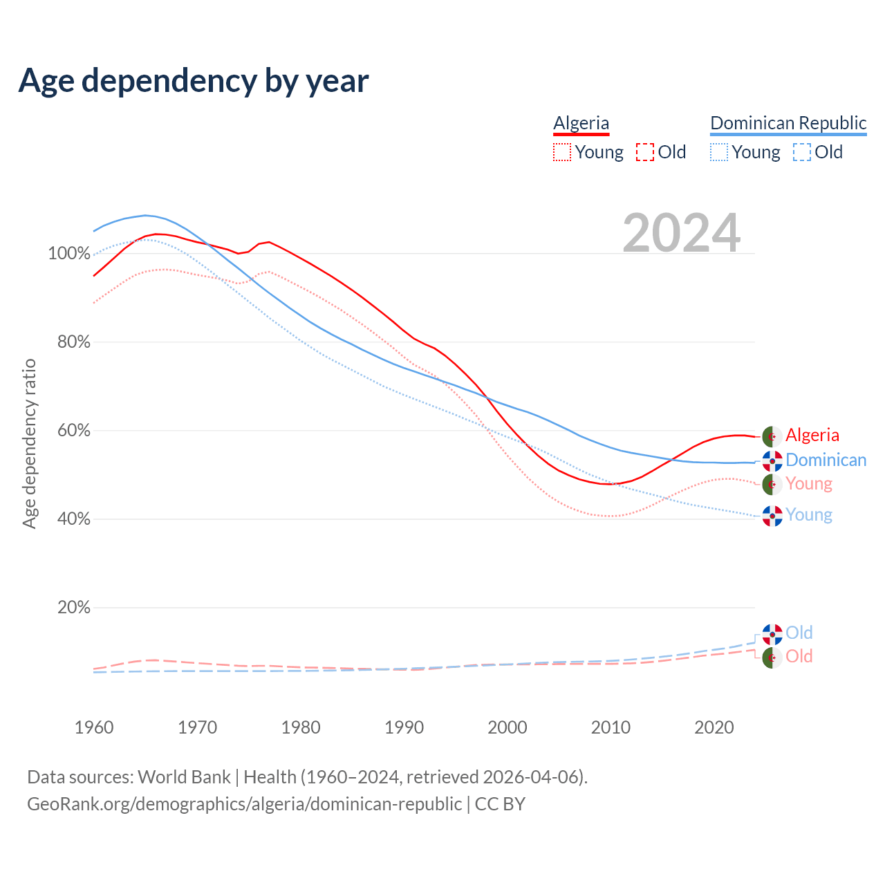 - Algeria is ranked 111/196 by median age (oldest to youngest) vs 112/196 for the Dominican Republic.