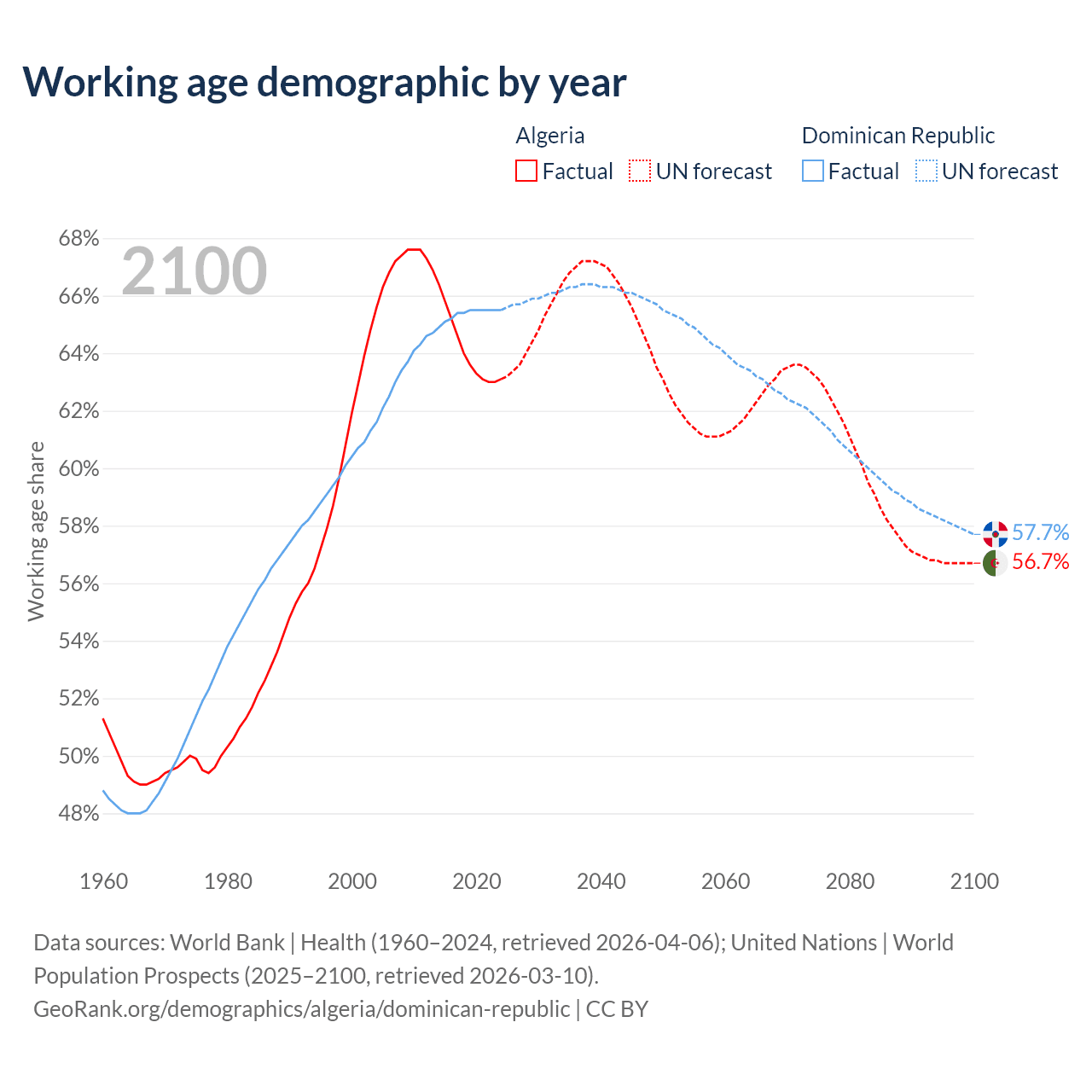 - Algeria has 30.4M working age adults (aged 15-64) vs 7.63M in the Dominican Republic.