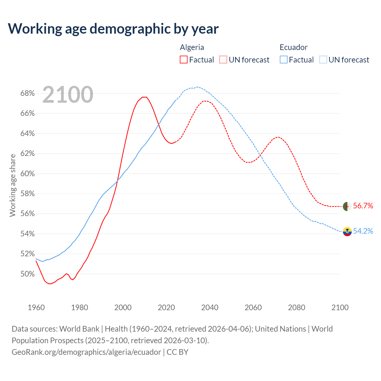 - Algeria has 30.4M working age adults (aged 15-64) vs 12.4M in Ecuador.