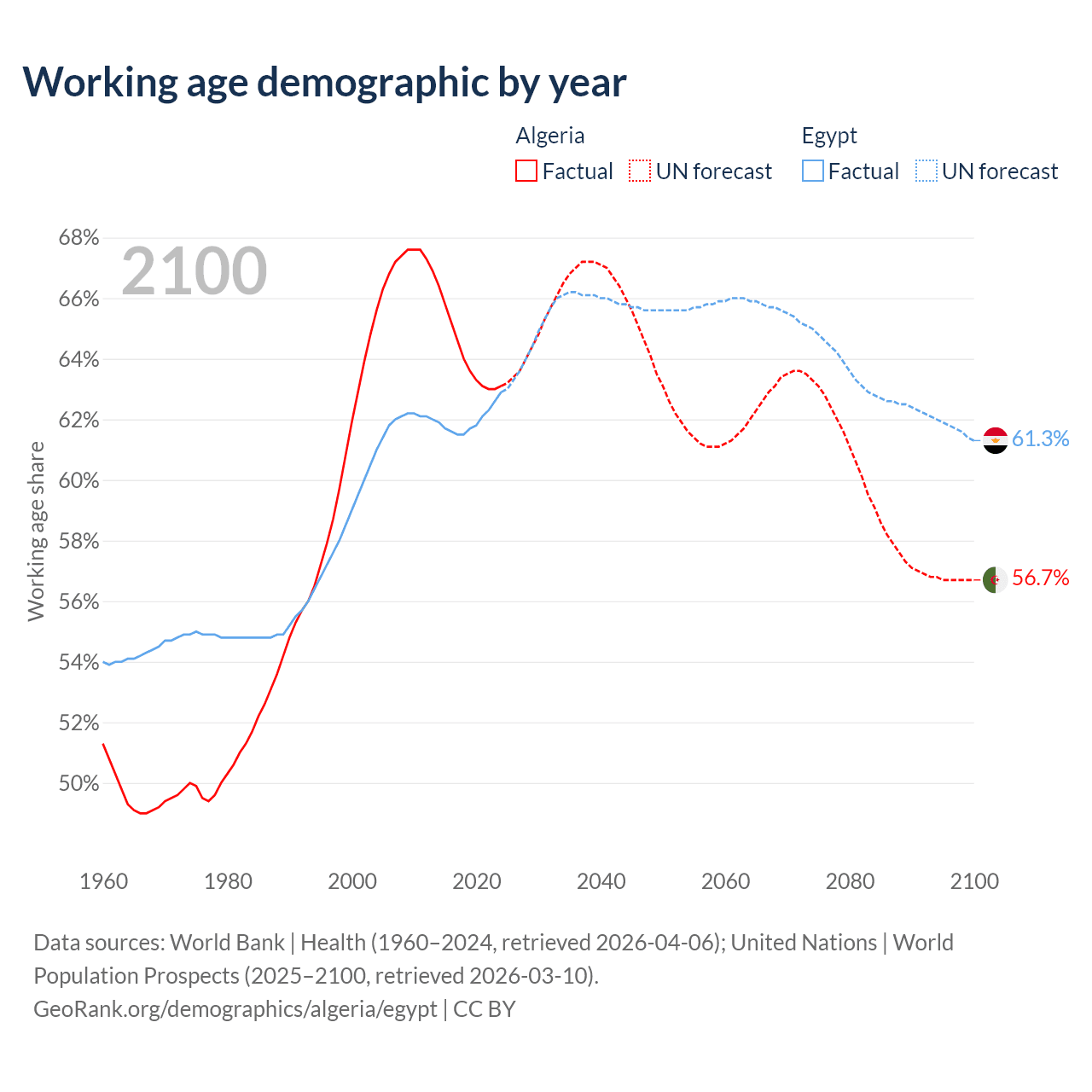 - Algeria has 30.4M working age adults (aged 15-64) vs 75.9M in Egypt.