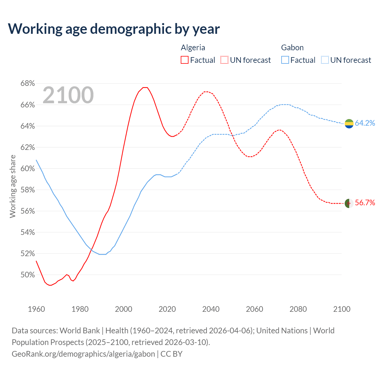 - Algeria has 30.4M working age adults (aged 15-64) vs 1.58M in Gabon.