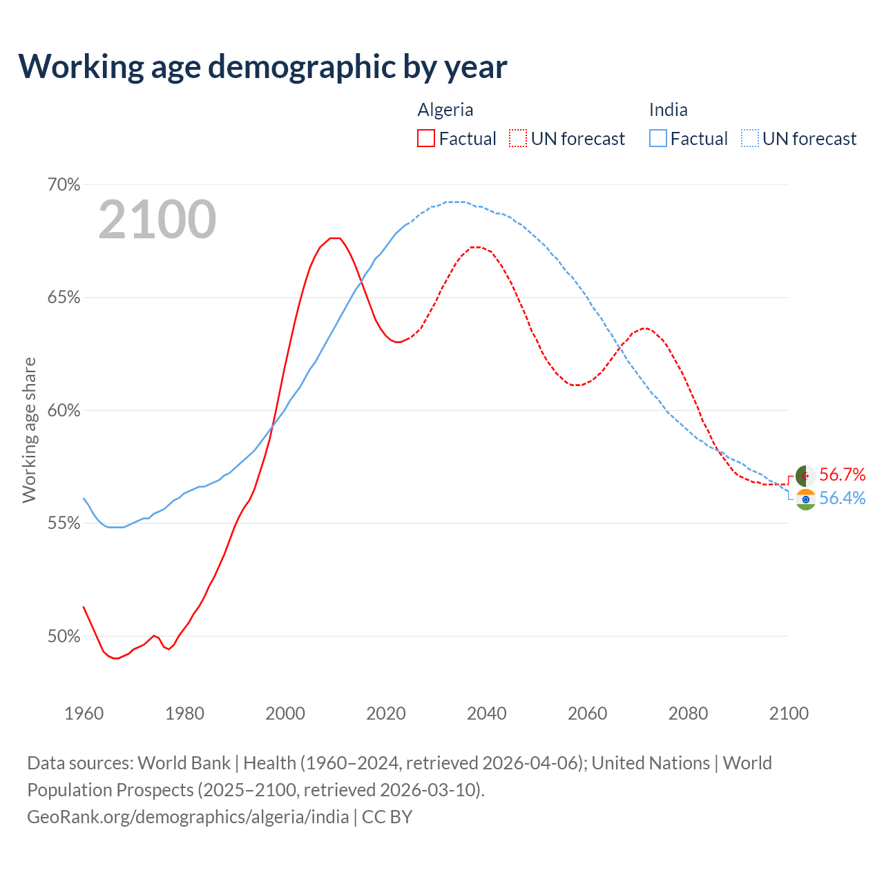 - Algeria has 30.4M working age adults (aged 15-64) vs 1.01B in India.