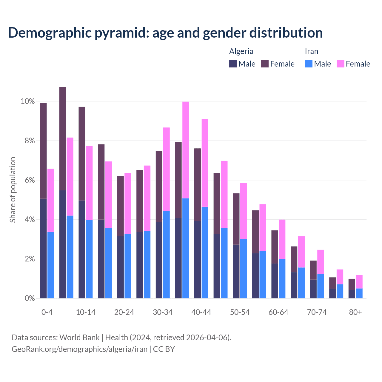 Demographics of Algeria compared to Iran: