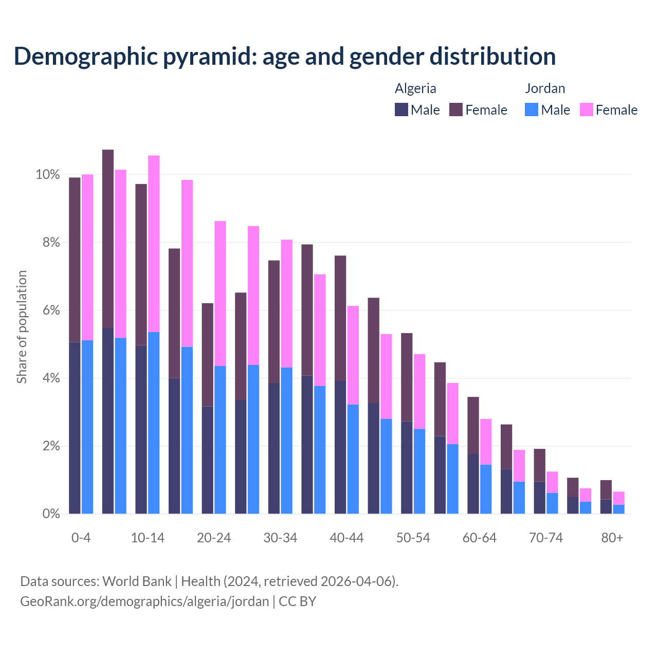 Demographics of Algeria compared to Jordan: