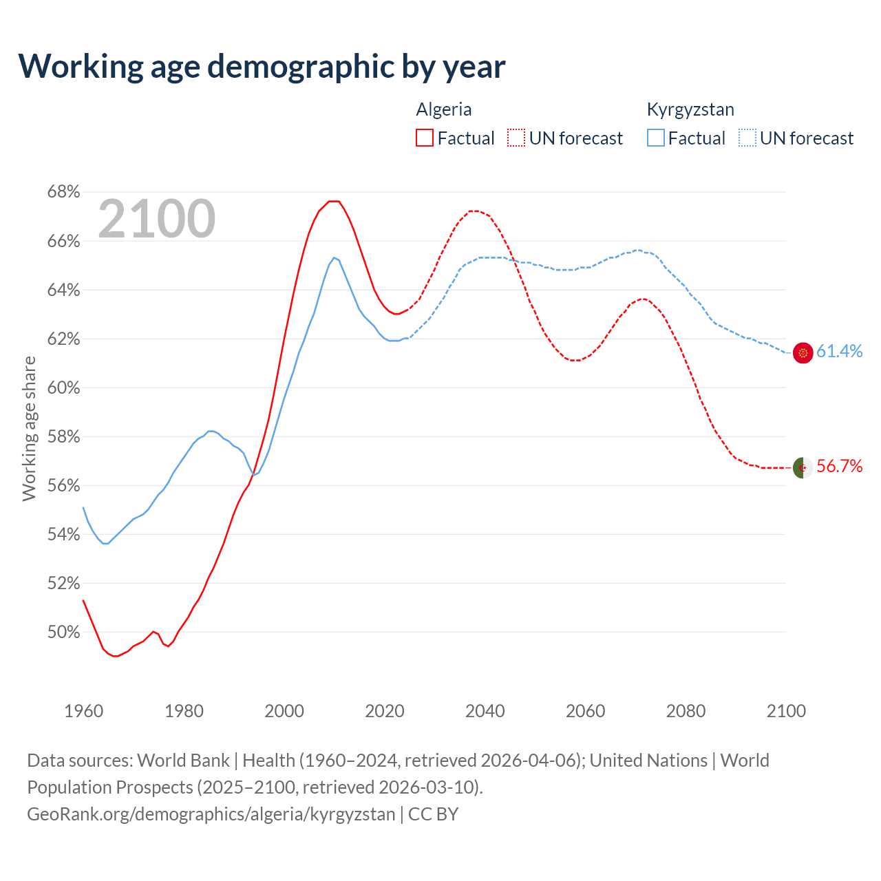 - Algeria has 30.4M working age adults (aged 15-64) vs 4.63M in Kyrgyzstan.