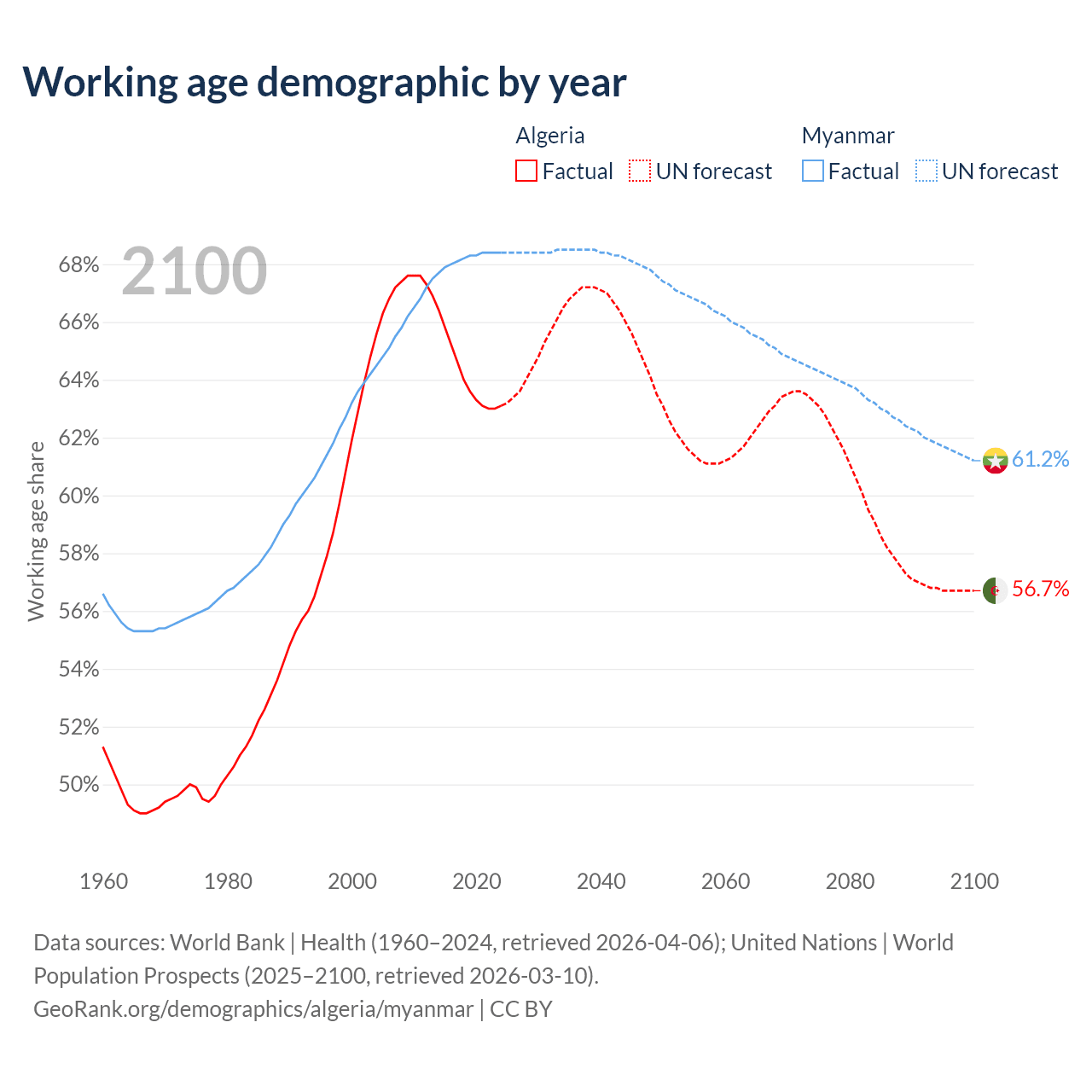 - Algeria has 30.4M working age adults (aged 15-64) vs 37.8M in Myanmar.