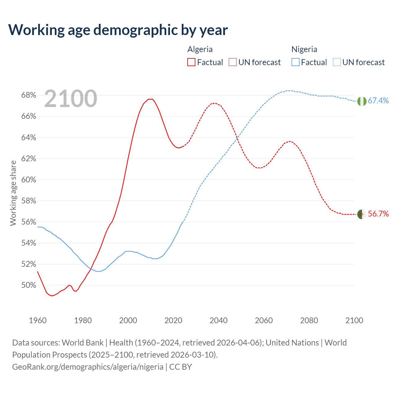 - Algeria has 30.4M working age adults (aged 15-64) vs 136M in Nigeria.