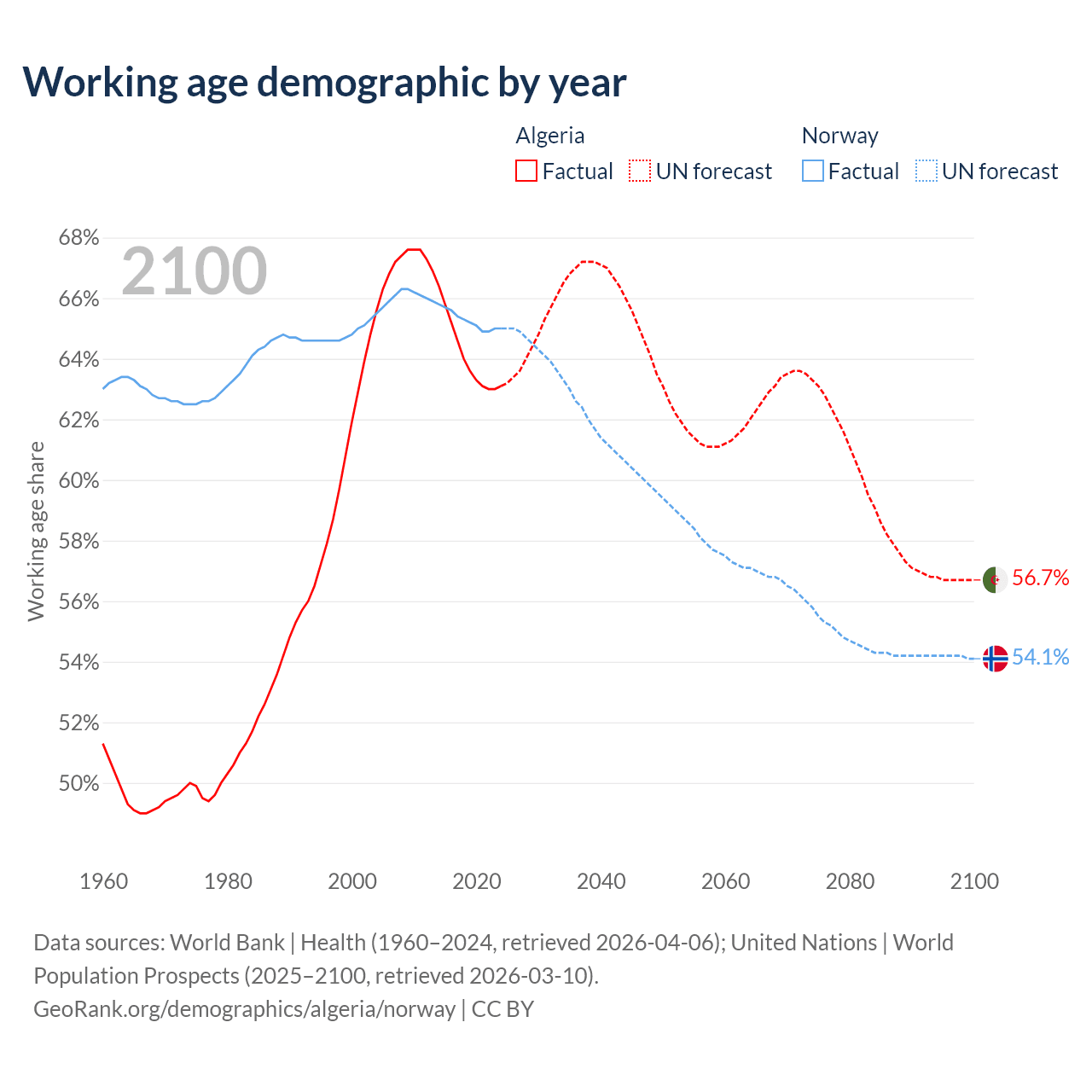- Algeria has 30.4M working age adults (aged 15-64) vs 3.69M in Norway.