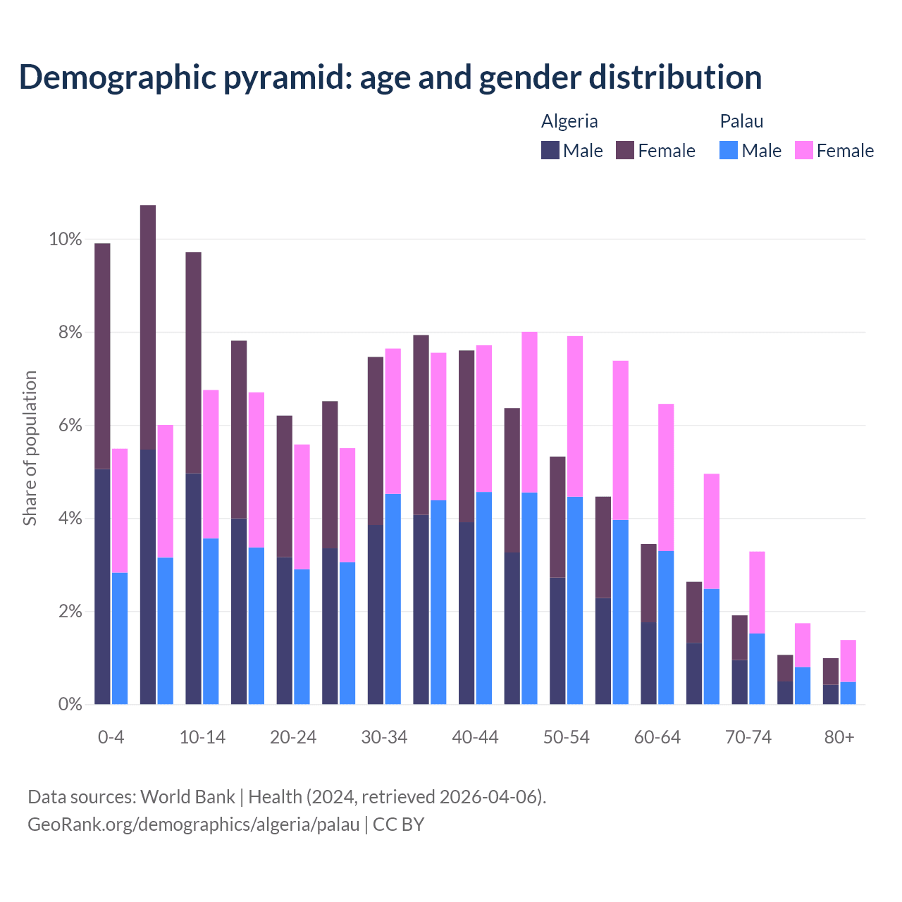 Demographics of Algeria compared to Palau: