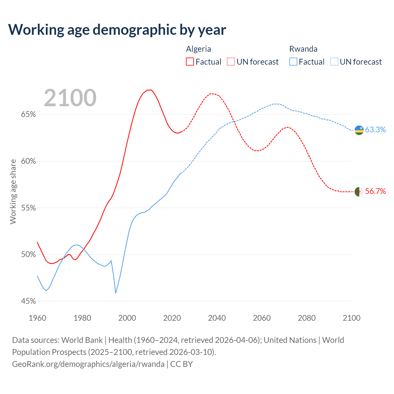 - Algeria has 30.4M working age adults (aged 15-64) vs 8.79M in Rwanda.
