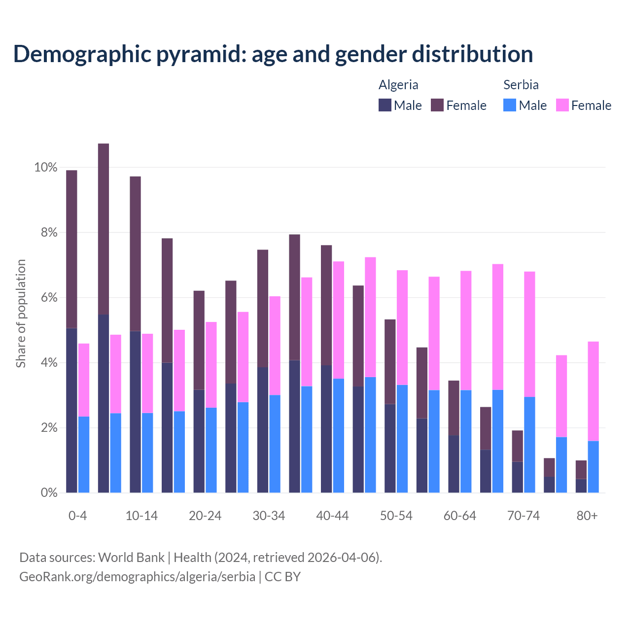 Demographics of Algeria compared to Serbia: