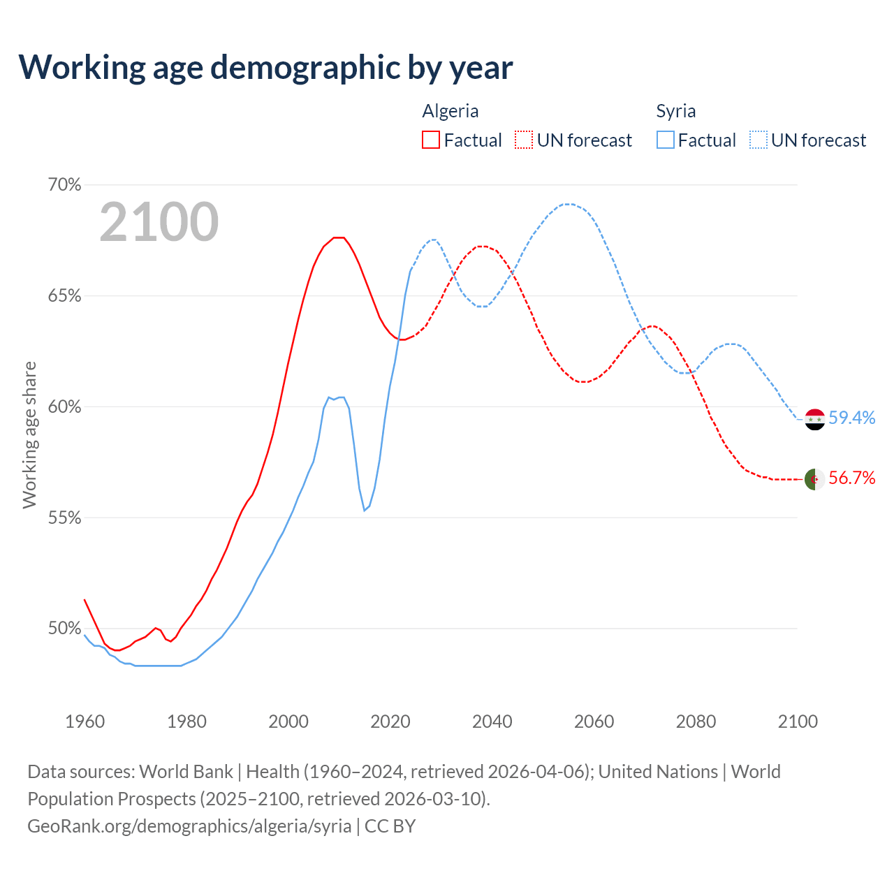 - Algeria has 30.4M working age adults (aged 15-64) vs 17.7M in Syria.