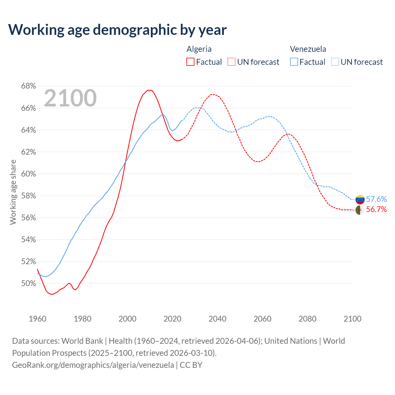 - Algeria has 30.4M working age adults (aged 15-64) vs 18.6M in Venezuela.