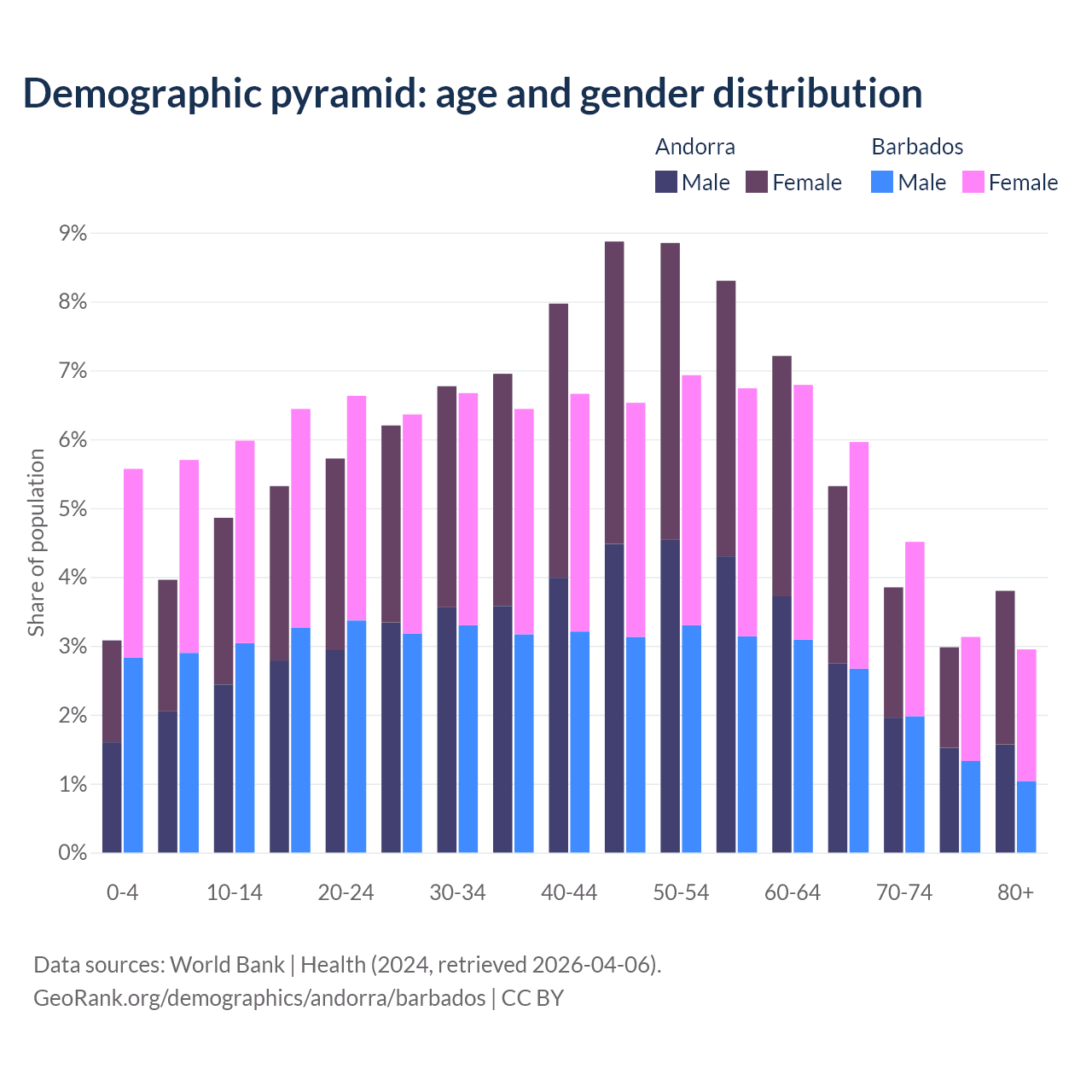Demographics of Andorra compared to Barbados: