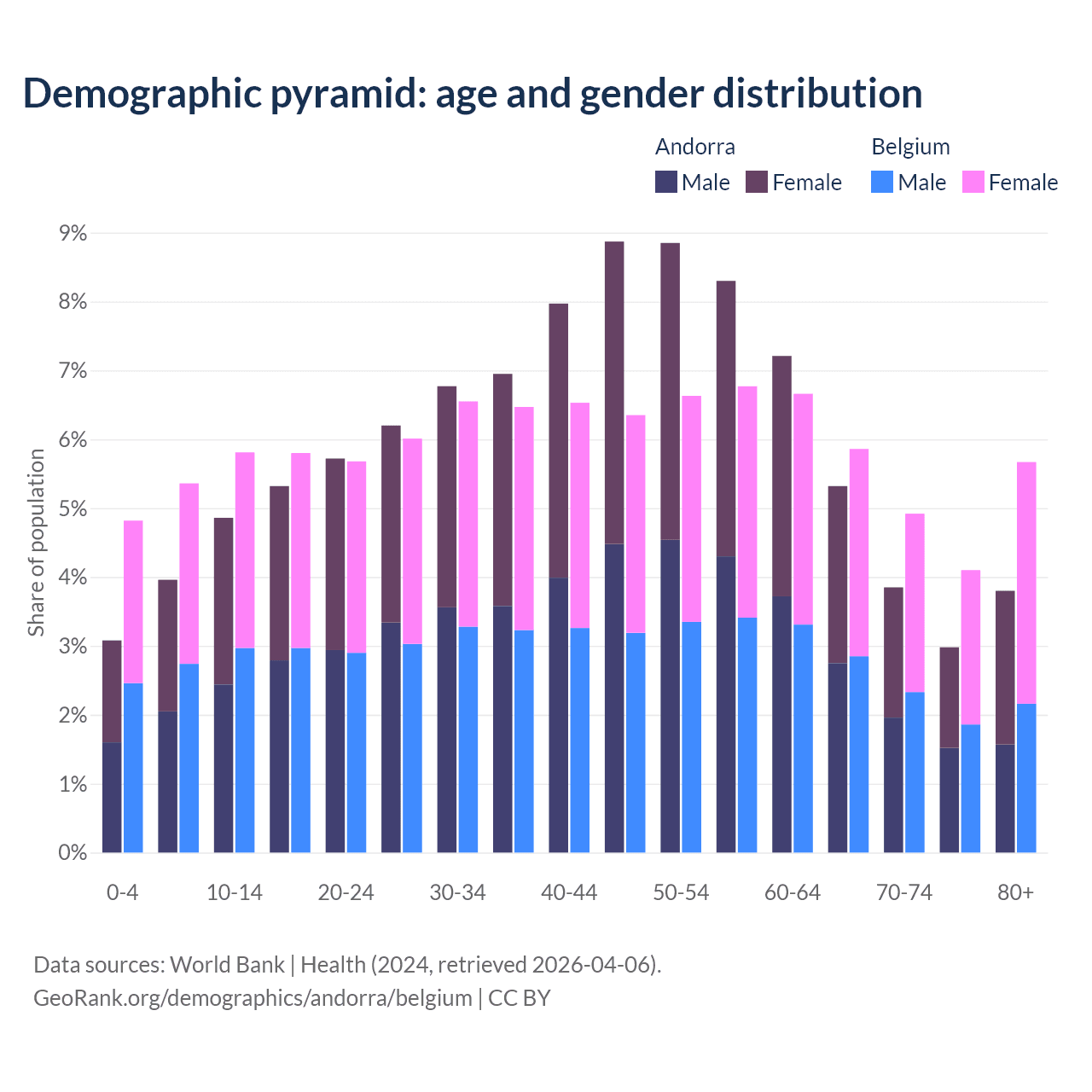 Demographics of Andorra compared to Belgium: