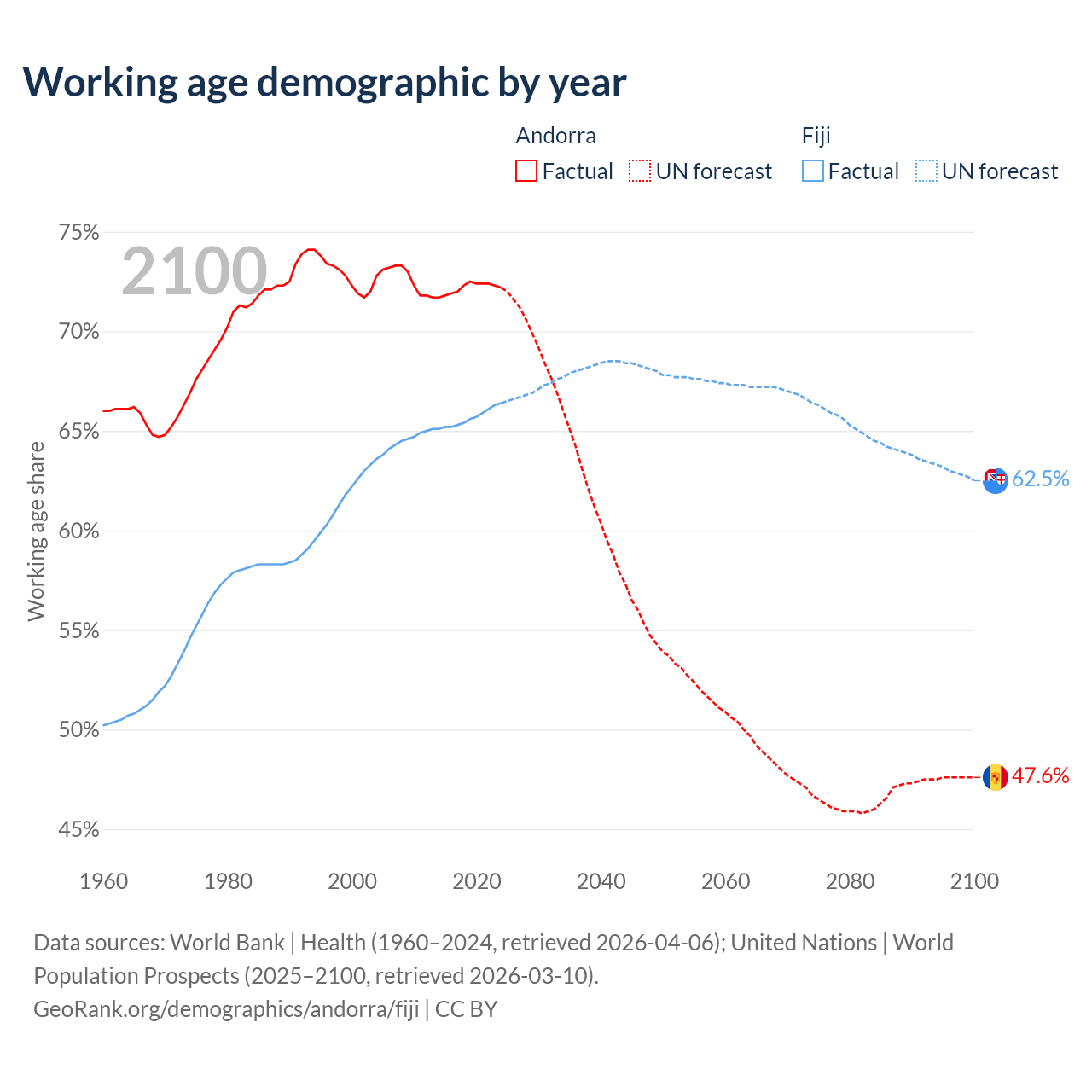 - Andorra has 60.7K working age adults (aged 15-64) vs 623K in Fiji.