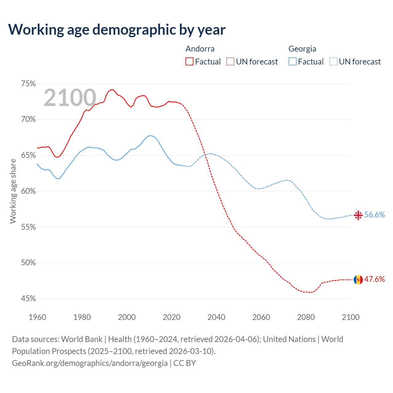 - Andorra has 60.7K working age adults (aged 15-64) vs 2.35M in Georgia.