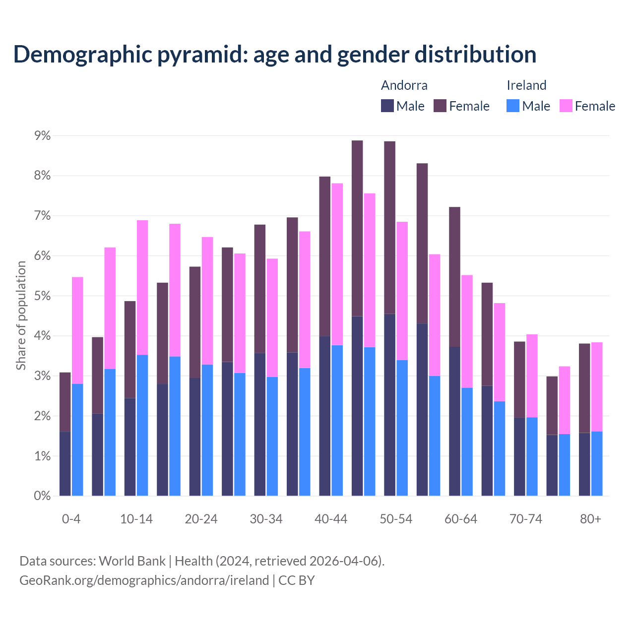Demographics of Andorra compared to Ireland: