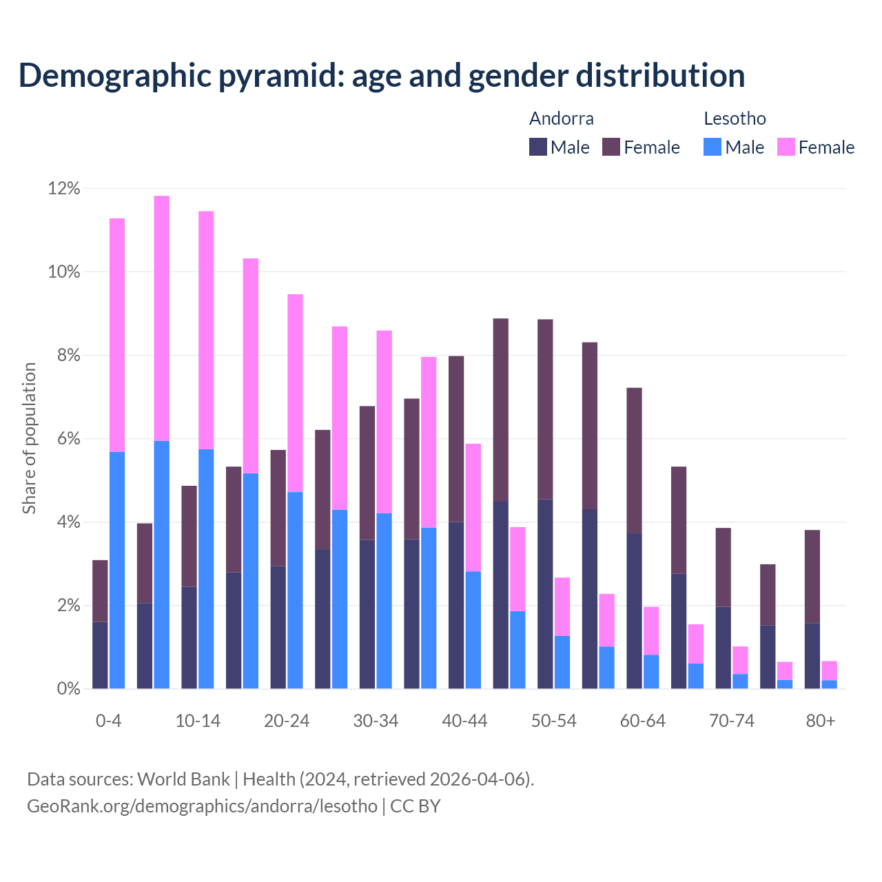 Demographics of Andorra compared to Lesotho: