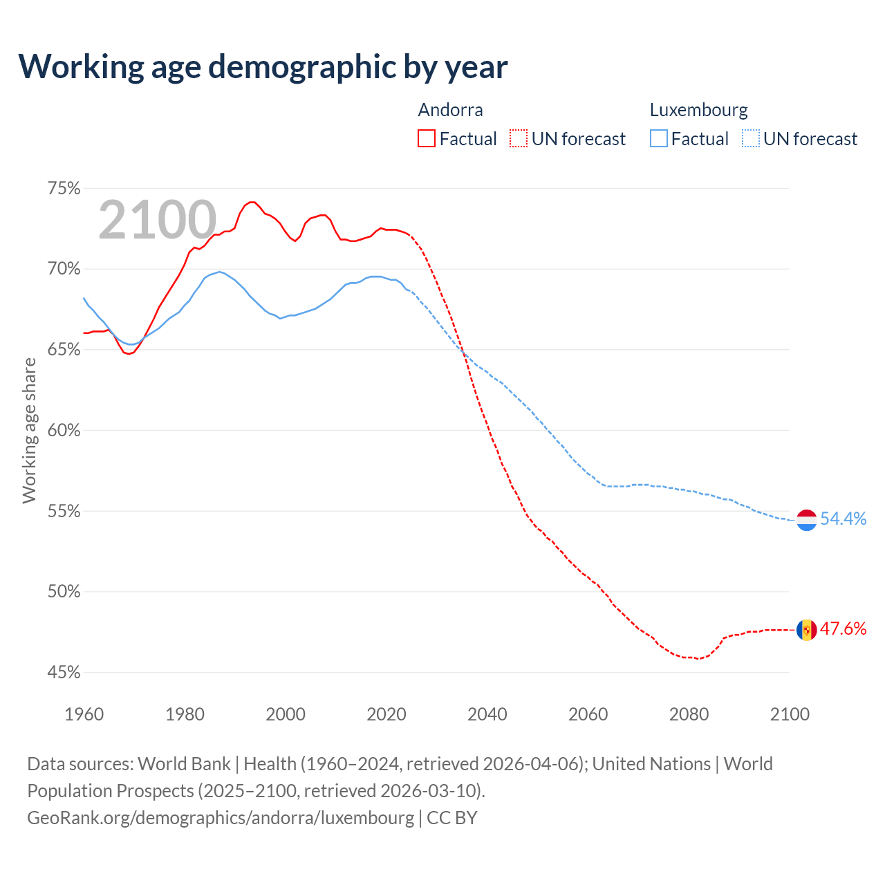 - Andorra has 60.7K working age adults (aged 15-64) vs 477K in Luxembourg.