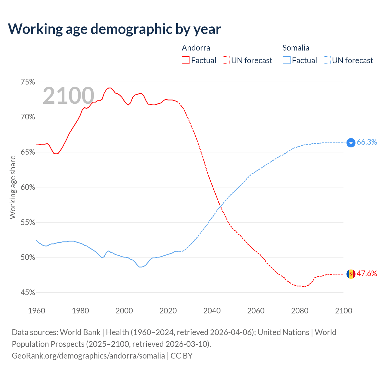 - Andorra has 60.7K working age adults (aged 15-64) vs 10.4M in Somalia.